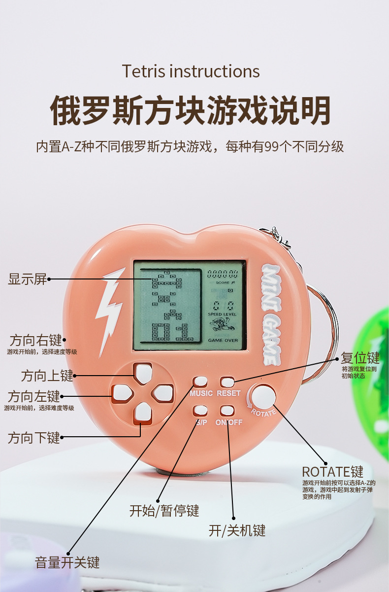 Creativo mini amor Tetris juegos llavero juguetes colgantes clásicos de dibujos animados juegos de mano