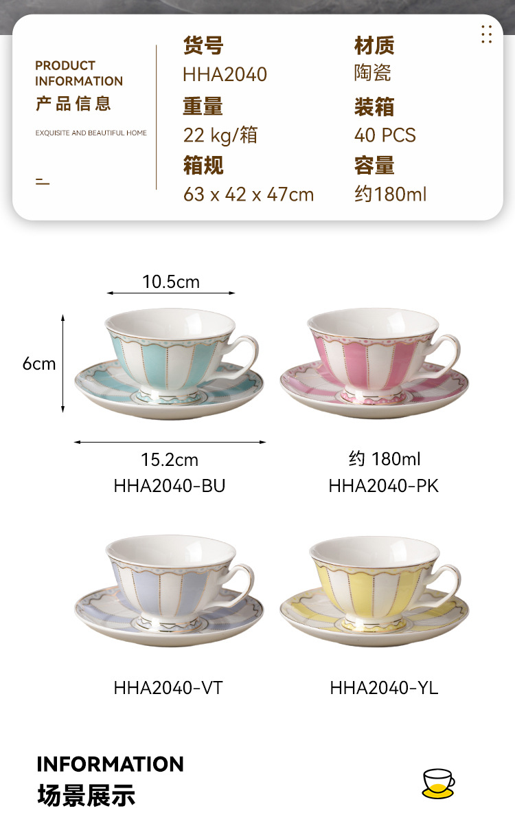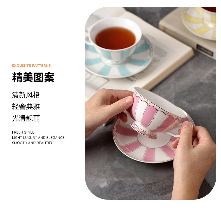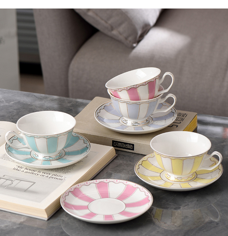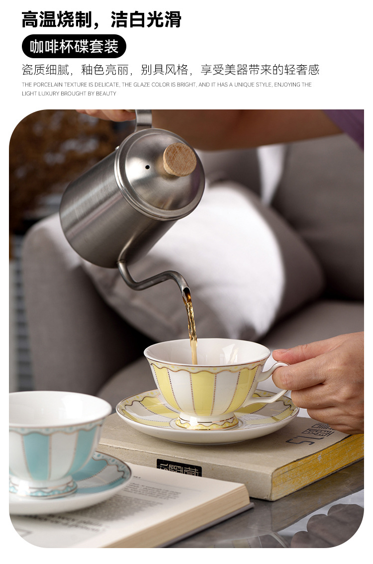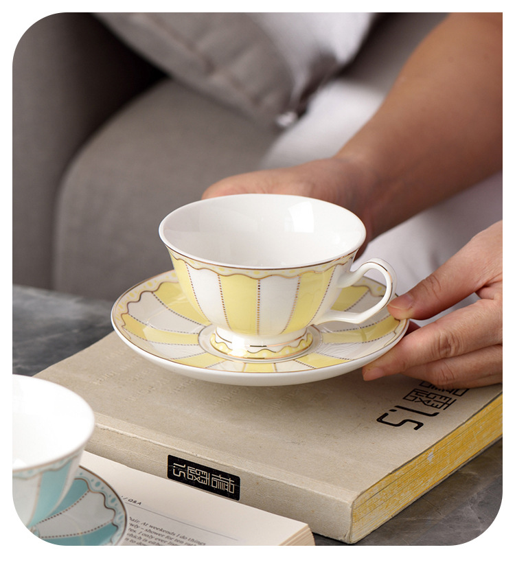 Taza y platillo de café de porcelana china a juego Taza de té de la tarde Taza de cerámica de estilo nórdico Taza de té negro simple Juego de caja de regalo