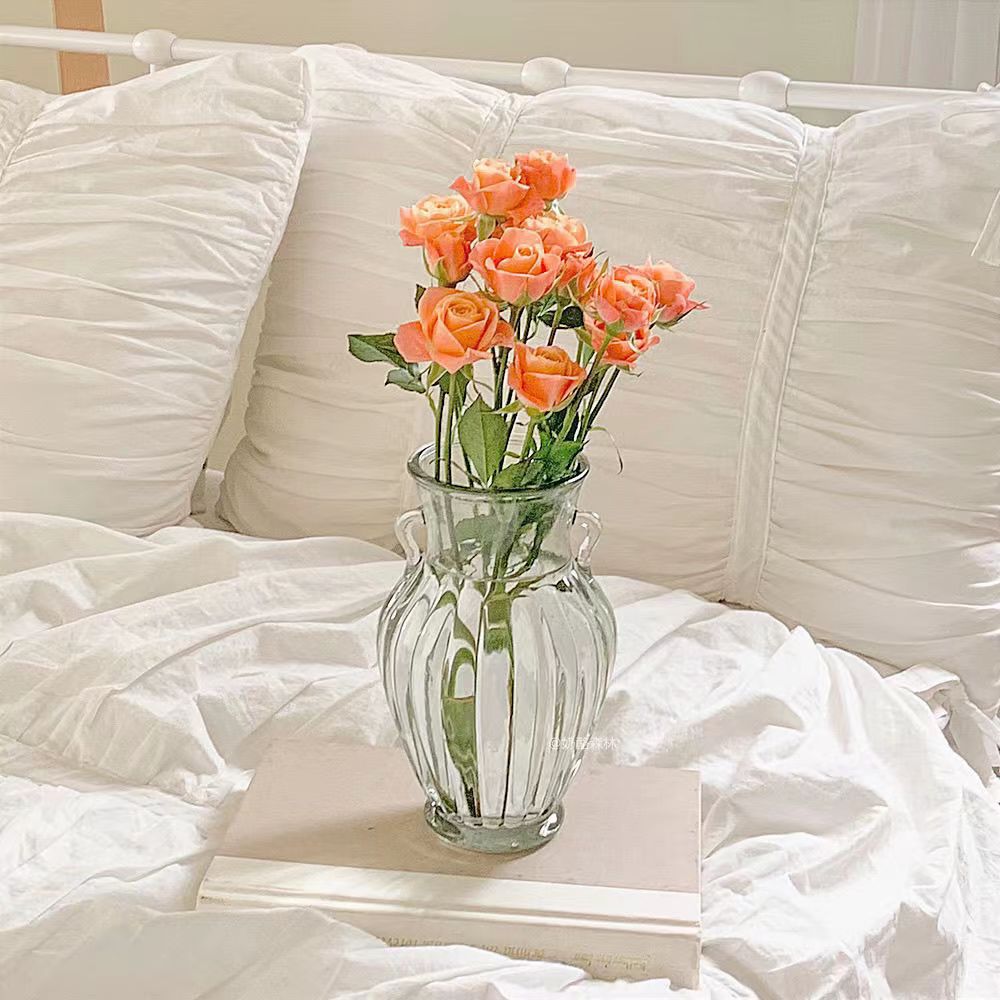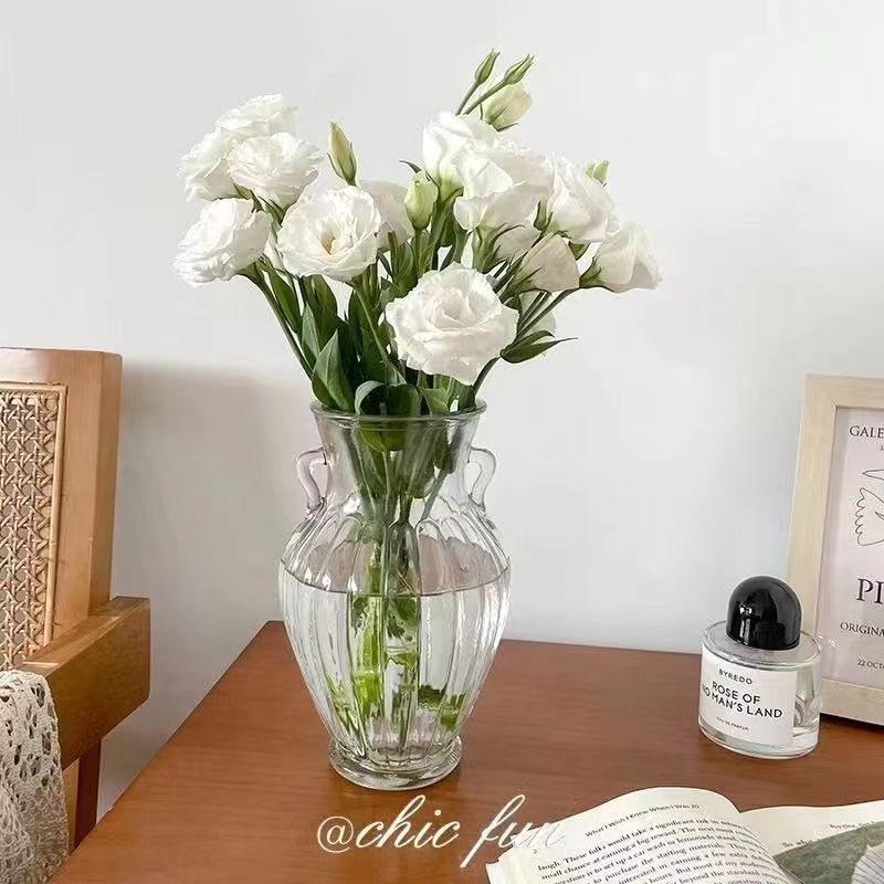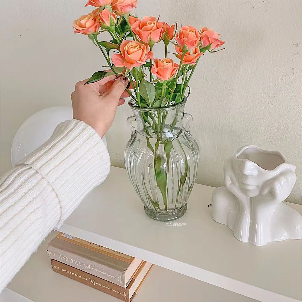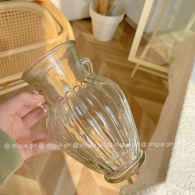 Barra vertical de doble oreja decoración de jarrón de vidrio transparente estilo ins flor seca al por mayor florero de vidrio de rábano verde al por mayor