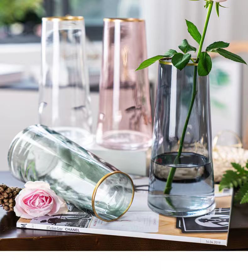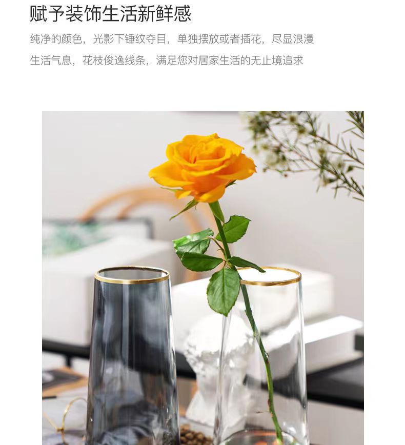 Nordic creativo Luz de lujo florero de cristal Hotel B & B decoración ins feng shui Rose Lily florero de alto sentido