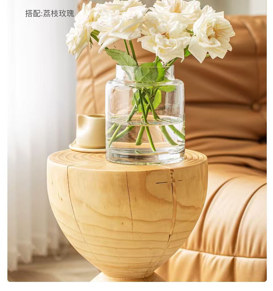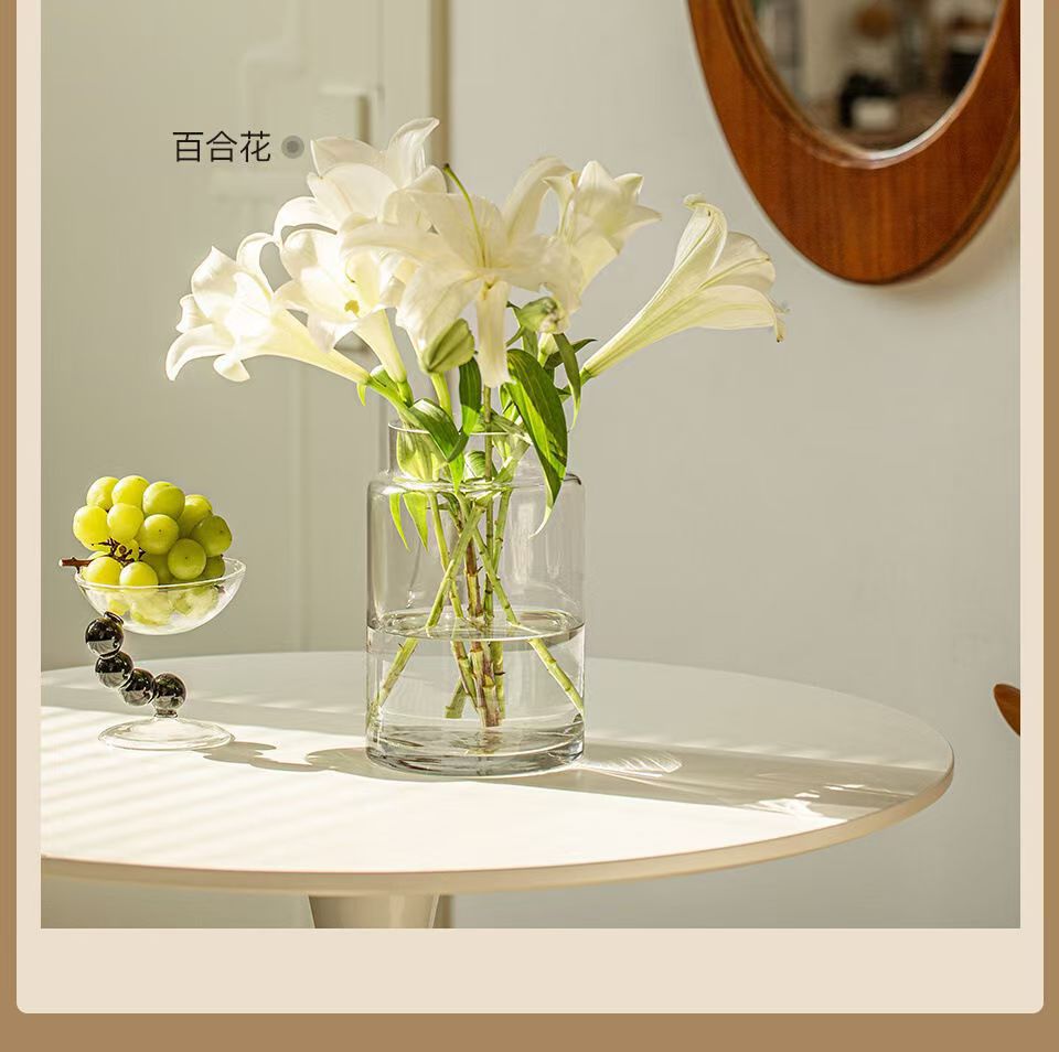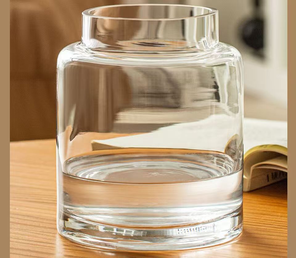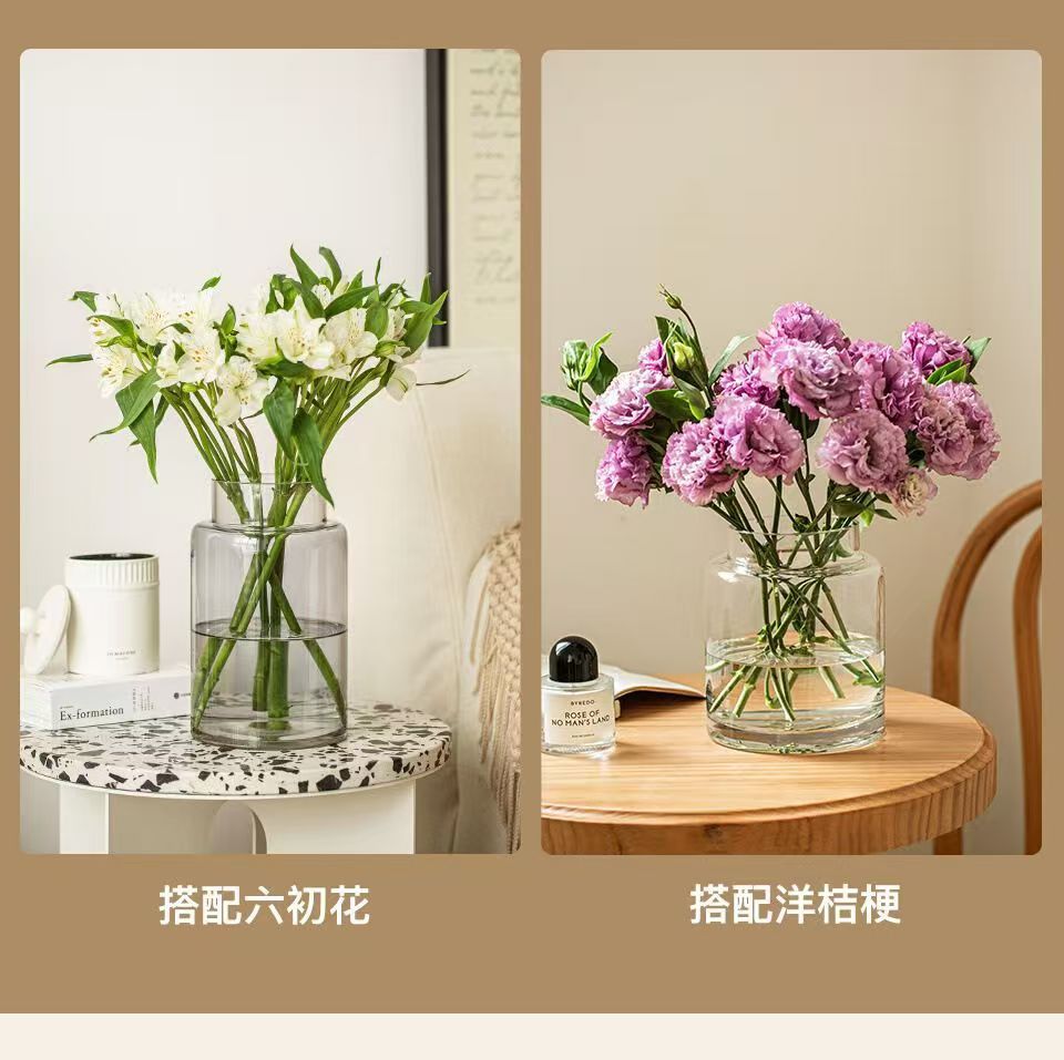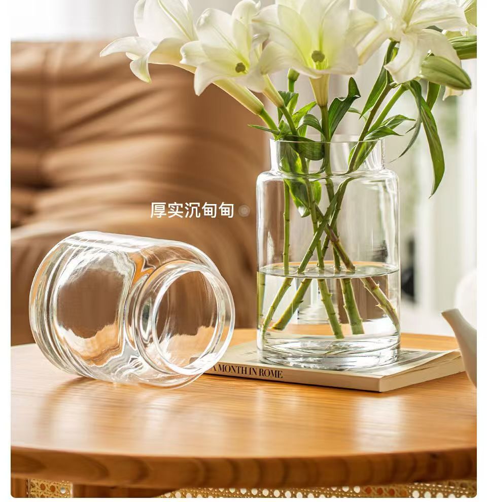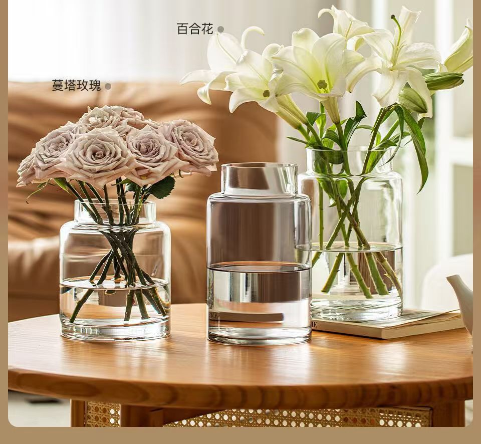 Decoración de vasos de flores para la sala de estar, vidrio ligero de lujo, alta calidad, mesa de comedor retrógrada transparente, rosa hidropónica baja, boca ancha