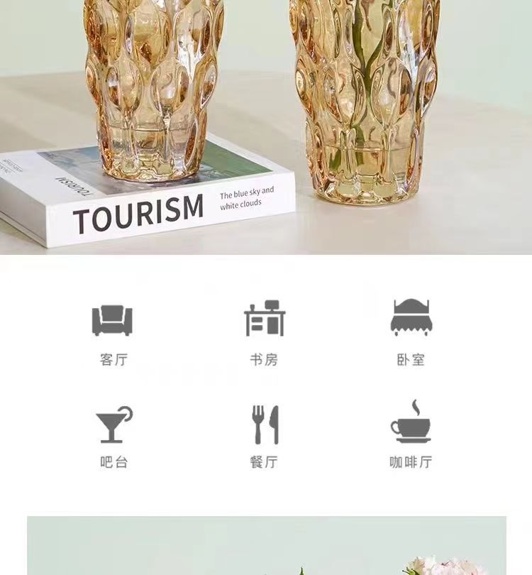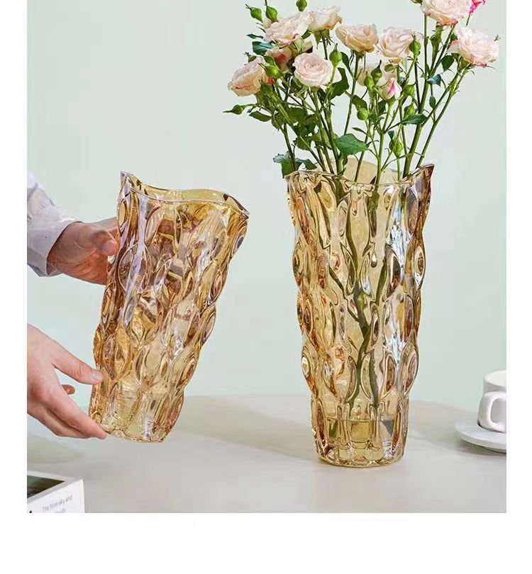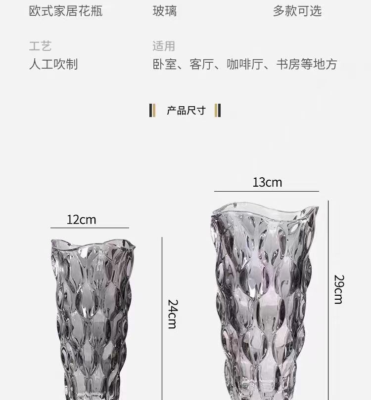 Artesanías de estilo europeo de la vendimia florero de cristal al por mayor florero bohemio de lujo ligero decoración del hogar arreglo floral