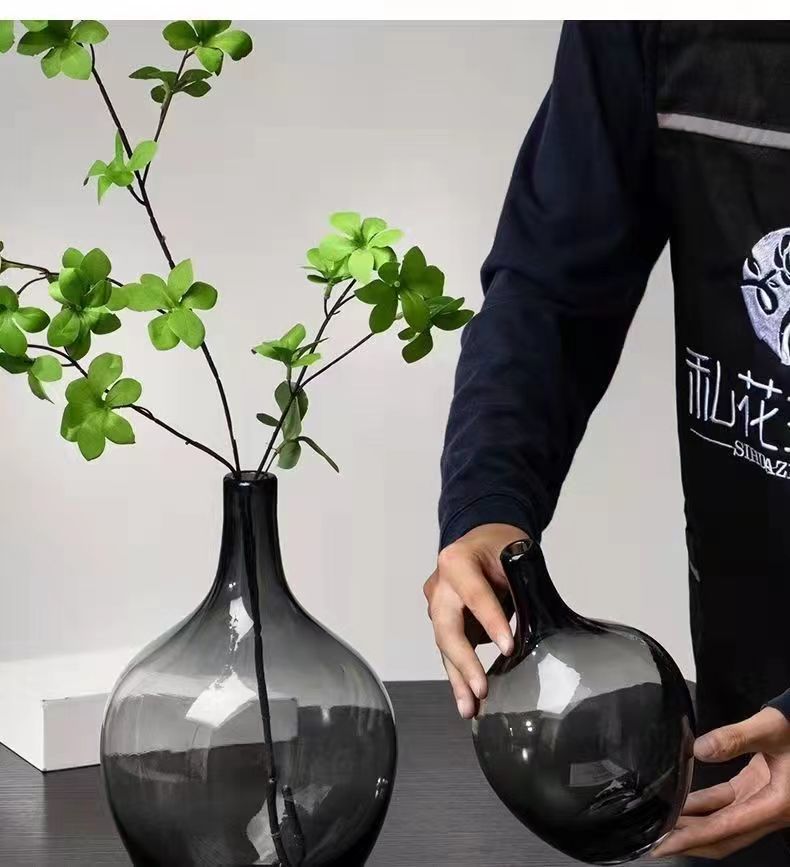 Jarrón de lujo ligero, reloj de pared, madera de caballo, recipiente hidropónico de vidrio transparente grande, arreglo floral nórdico, decoración de sala de estar, regalo.