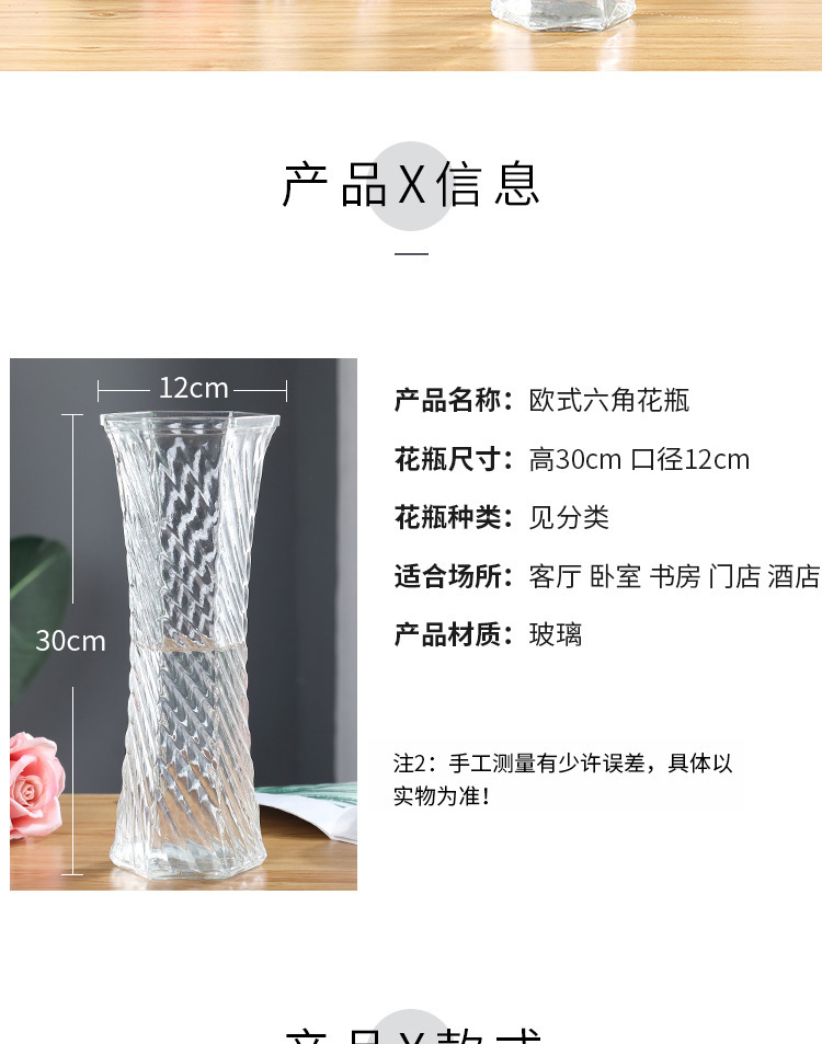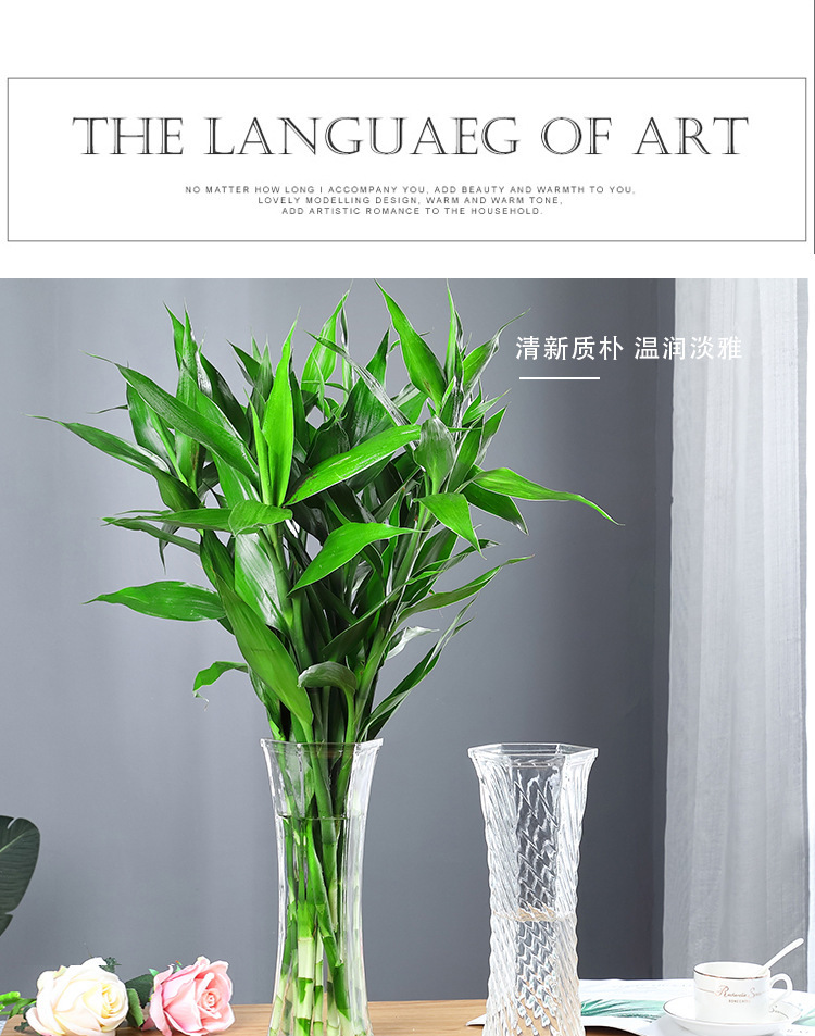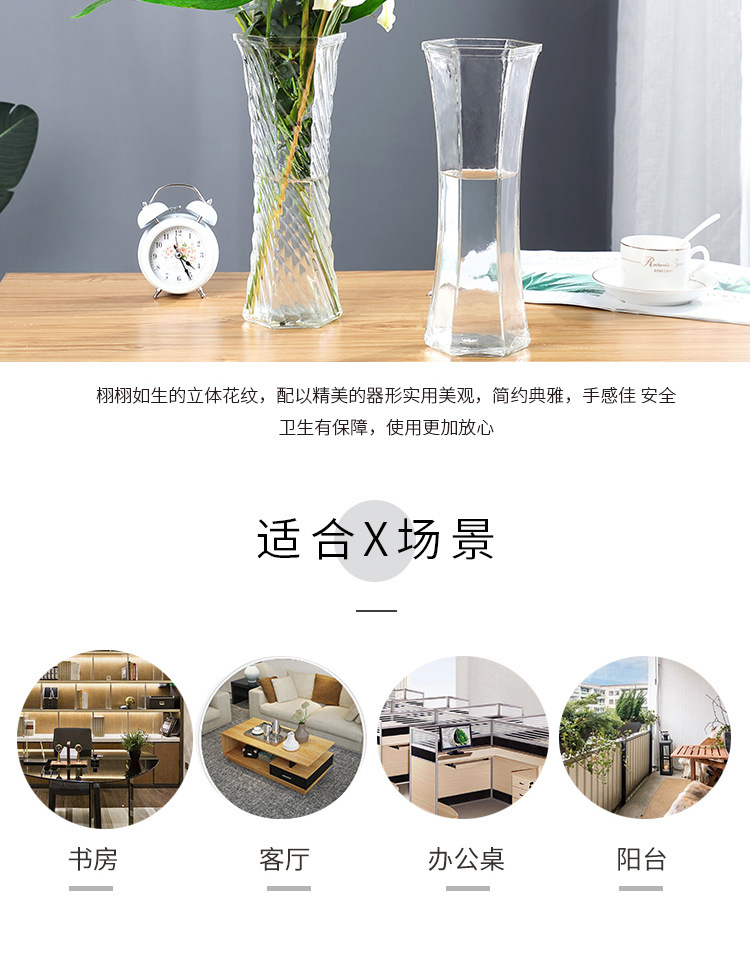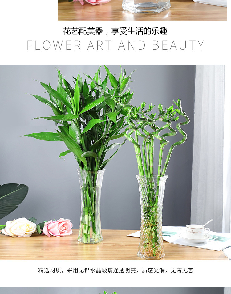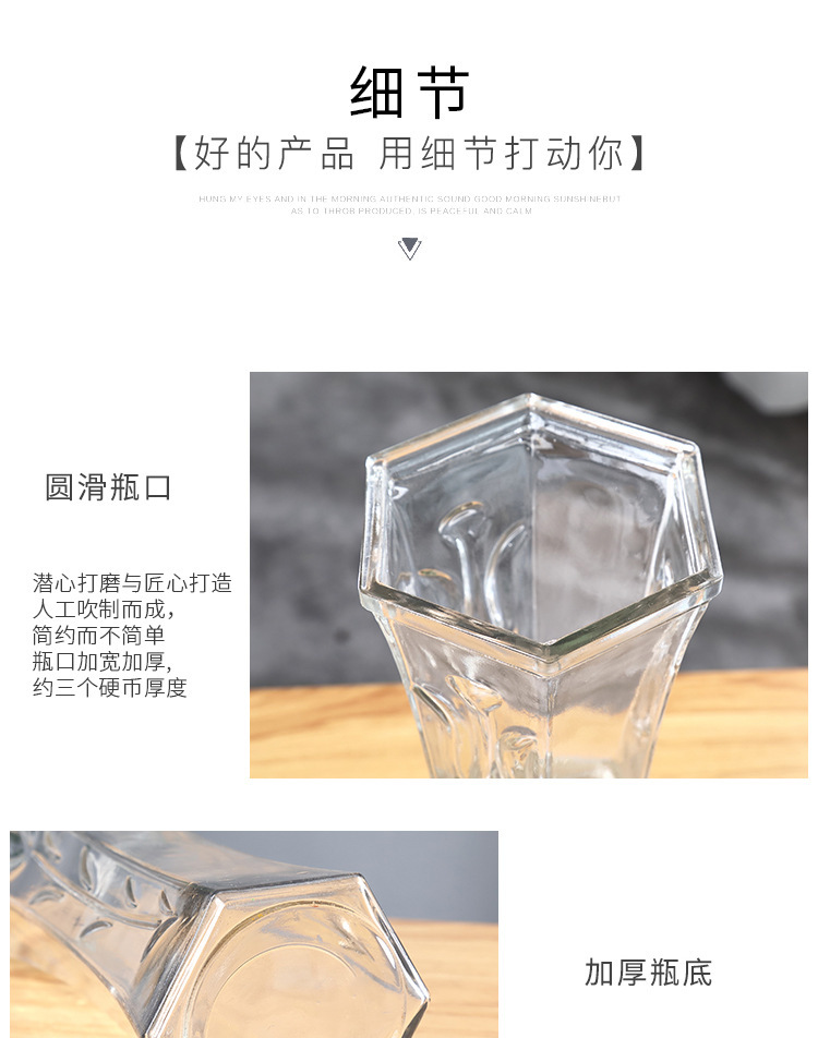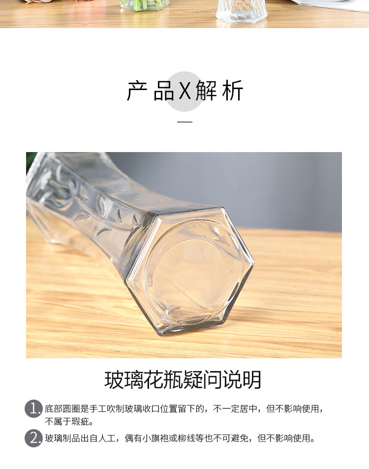 Florero de cristal 30 hexagonal transparente grande hidropónico rico lirio bambú florero escritorio Sala estar casera
