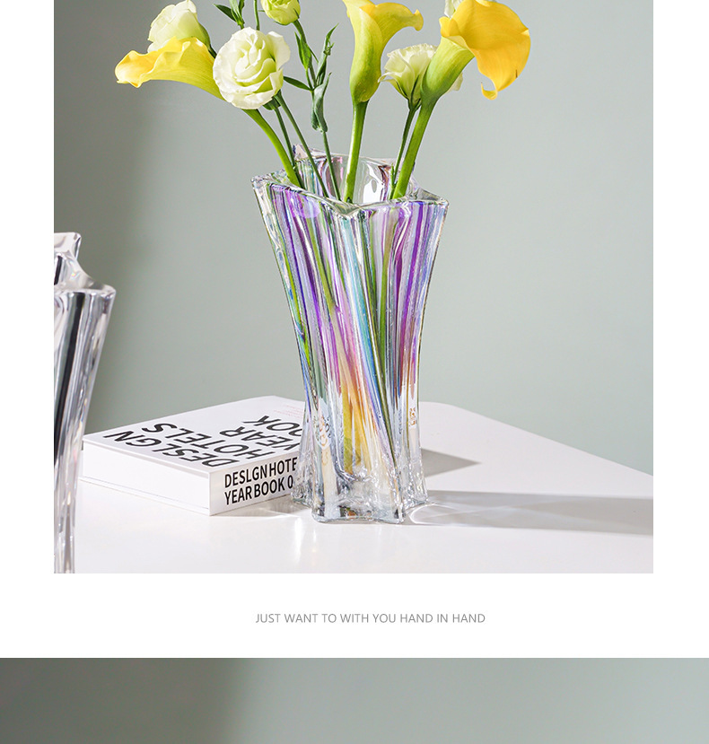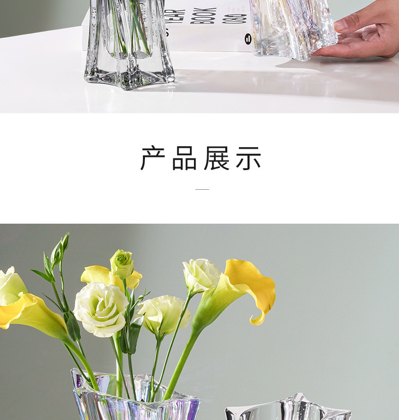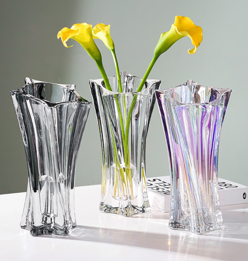 Vaso de cristal de luz estelar de alta gama nórdica, arreglo floral transparente, agua, lujo ligero, decoración de flores de sala de estar de alta gama