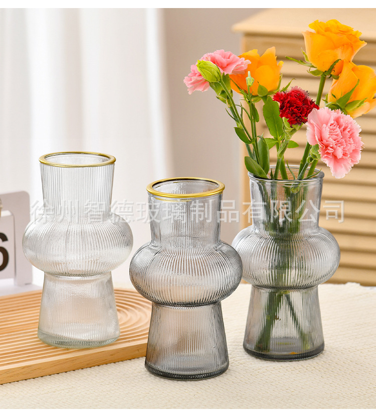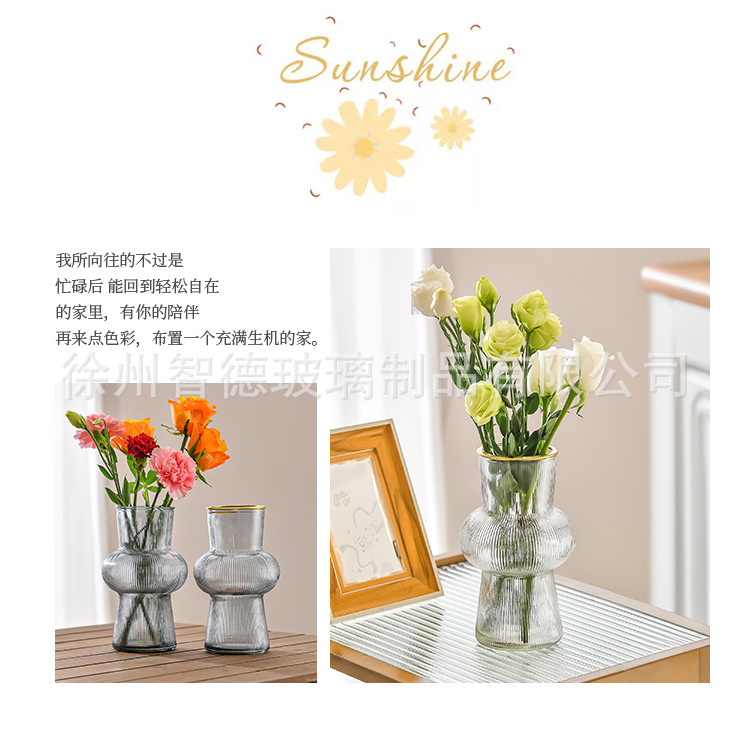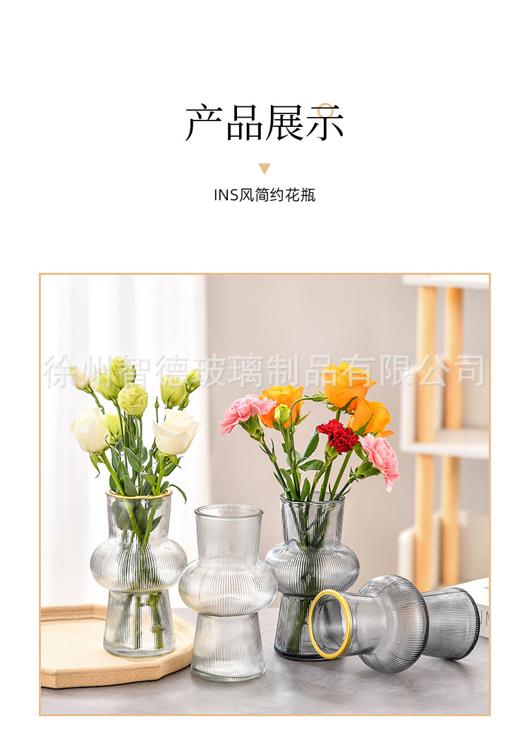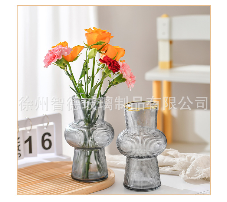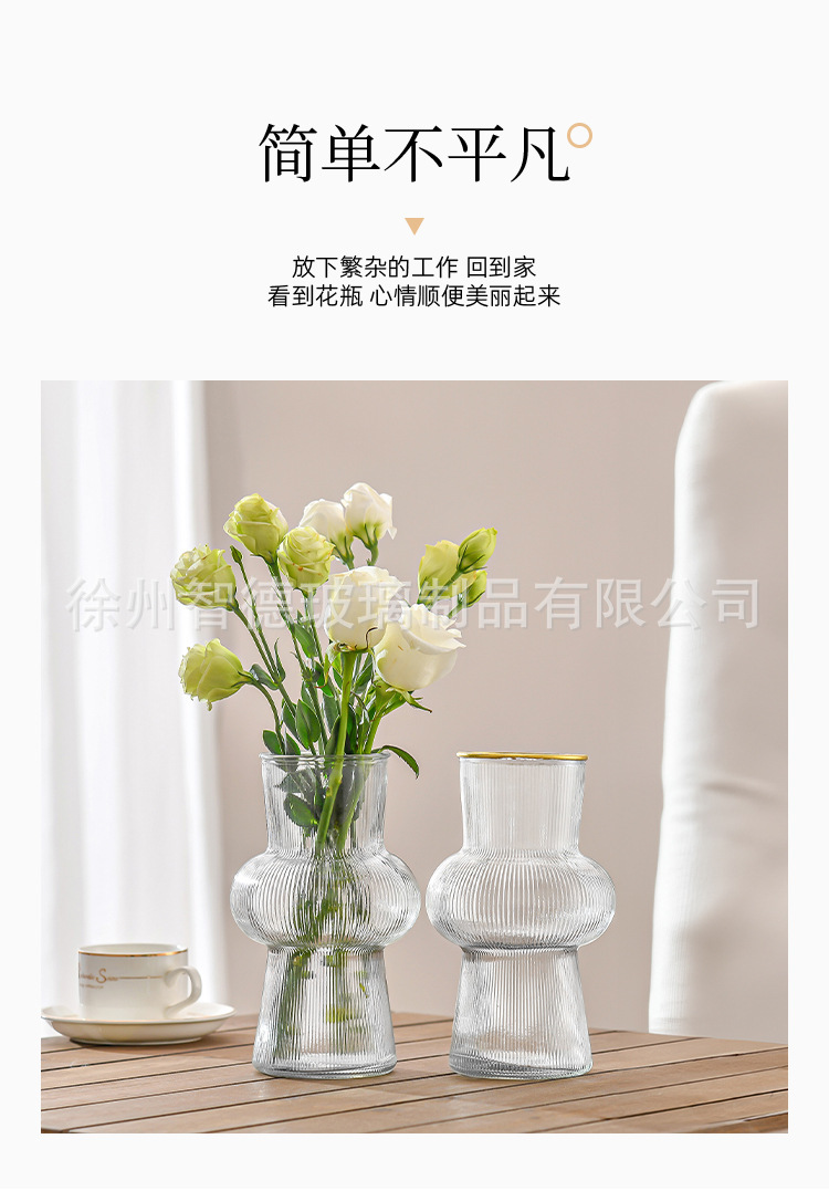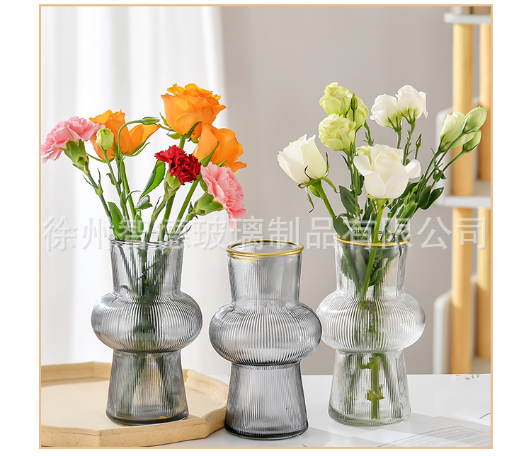 Vaso de vidrio transparente simple a rayas verticales ins viento de alto valor facial hidropónico doméstico rosa lirio al por mayor