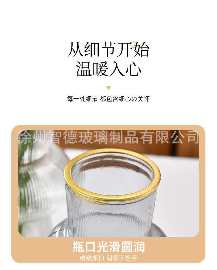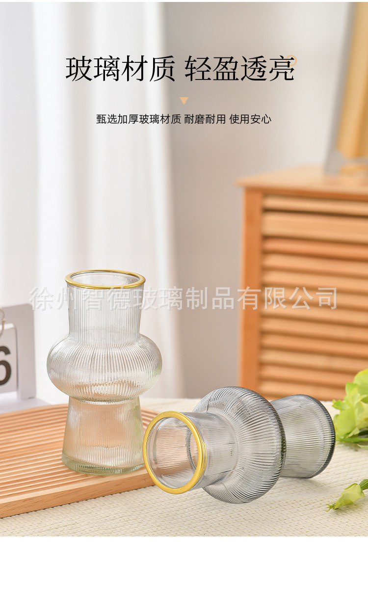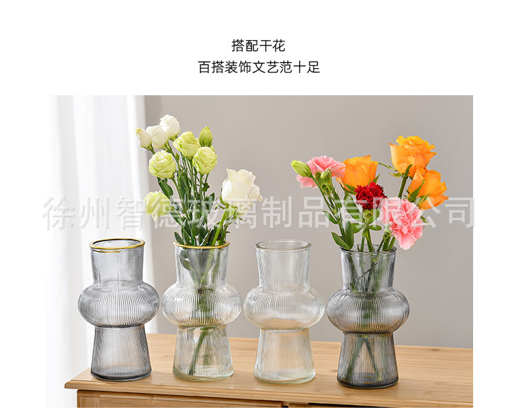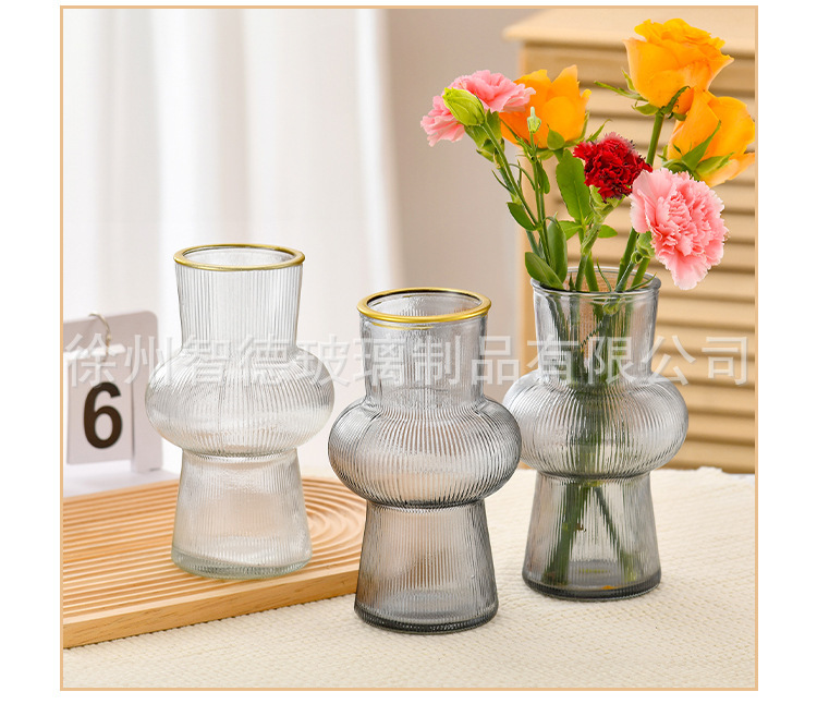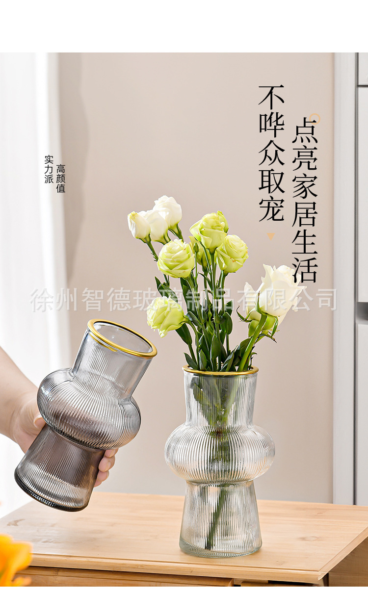 Vaso de vidrio transparente simple a rayas verticales ins viento de alto valor facial hidropónico doméstico rosa lirio al por mayor
