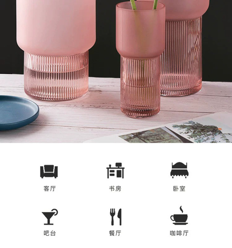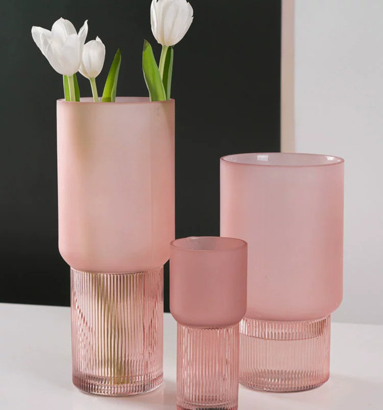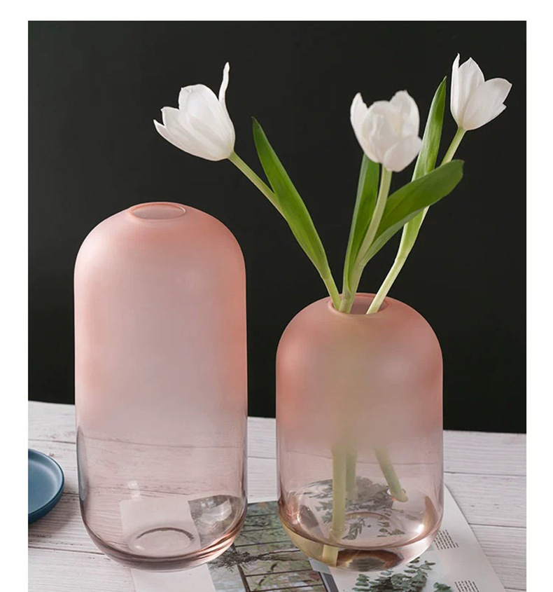 Moderno simple Rosa florero de vidrio esmerilado Red roja de alta apariencia sala de estar mesa de comedor arreglo floral Decoración