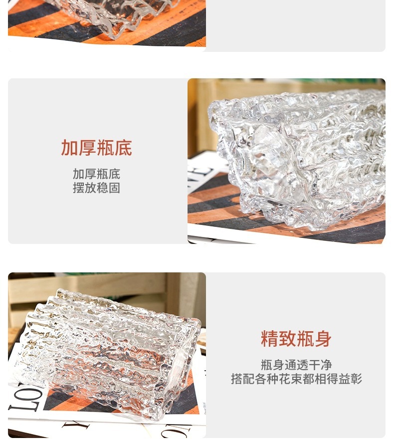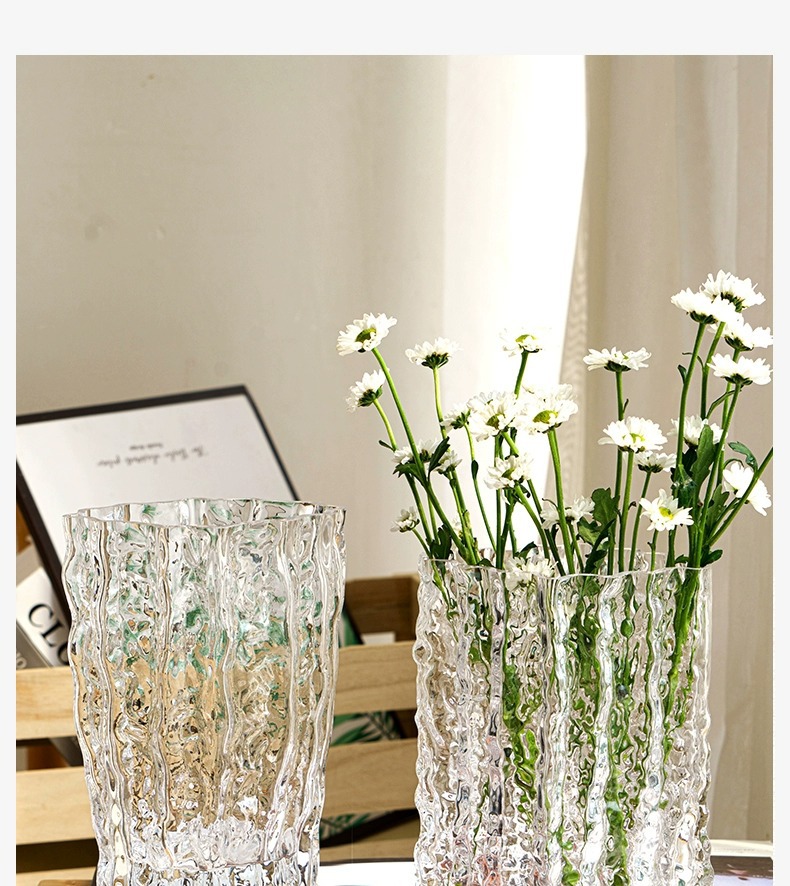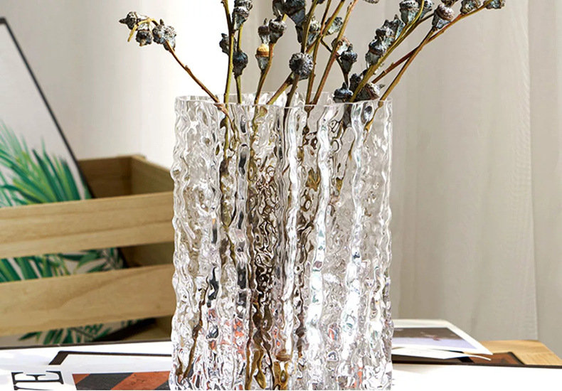 INS estilo de alta apariencia de Finlandia Glaciar florero de cristal transparente sala de estar de gran diámetro arreglo floral decoración artesanía