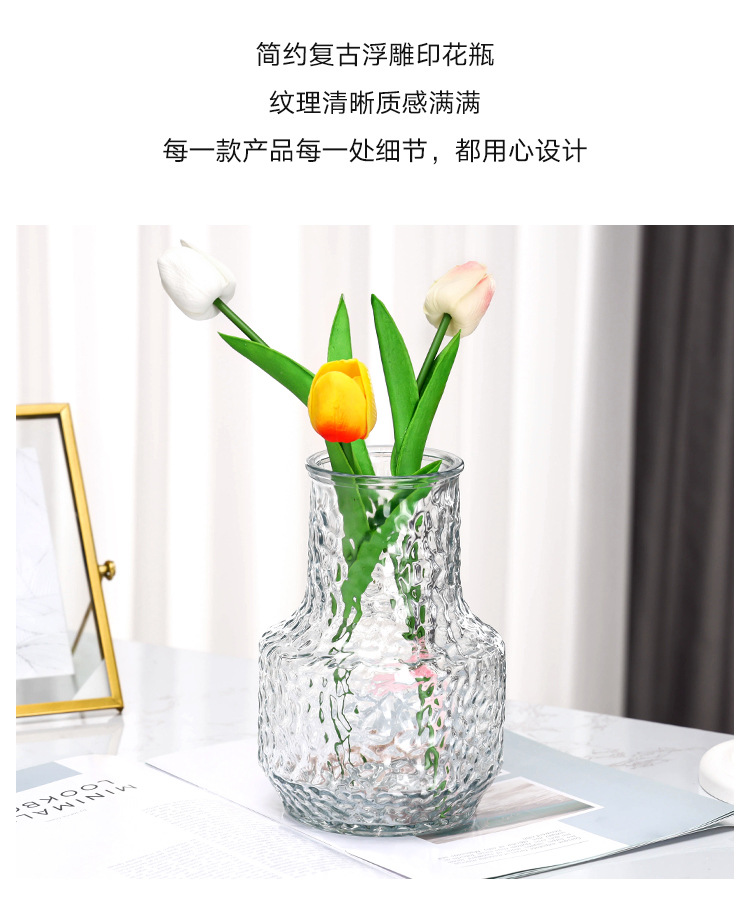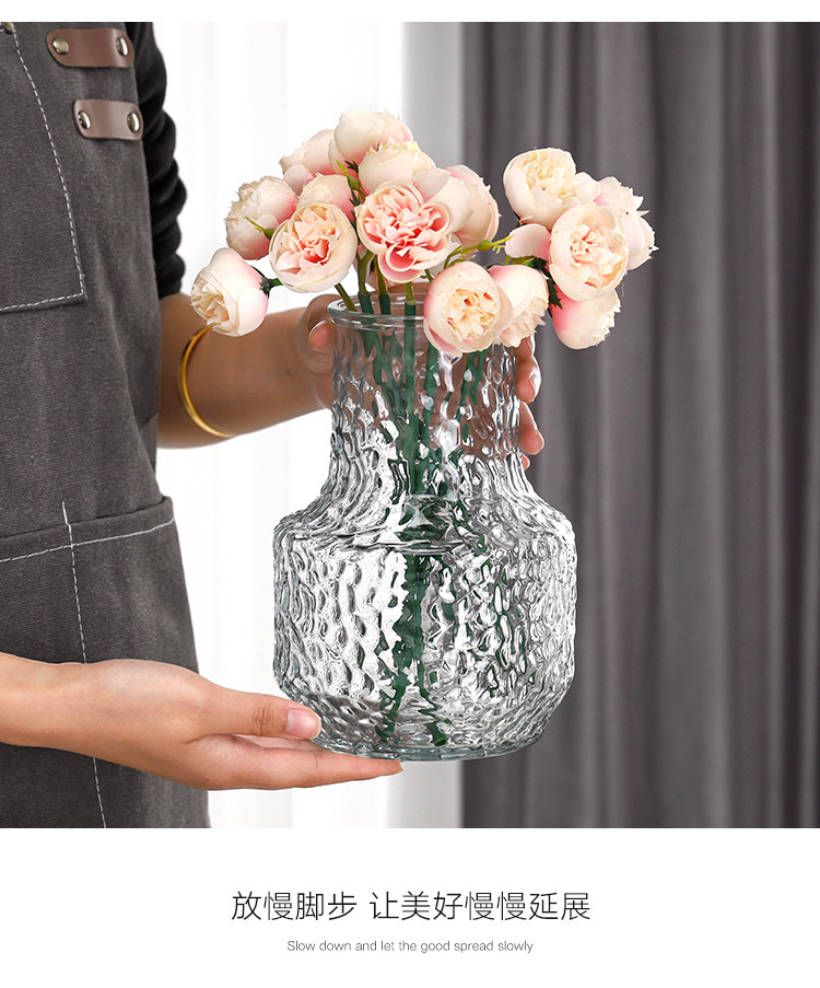Nuevo estilo chino simple hielo roca vasija de vidrio decoración ligeramente lujosa decoración de mesa de sala de estar acuoso flor flor floral vasija