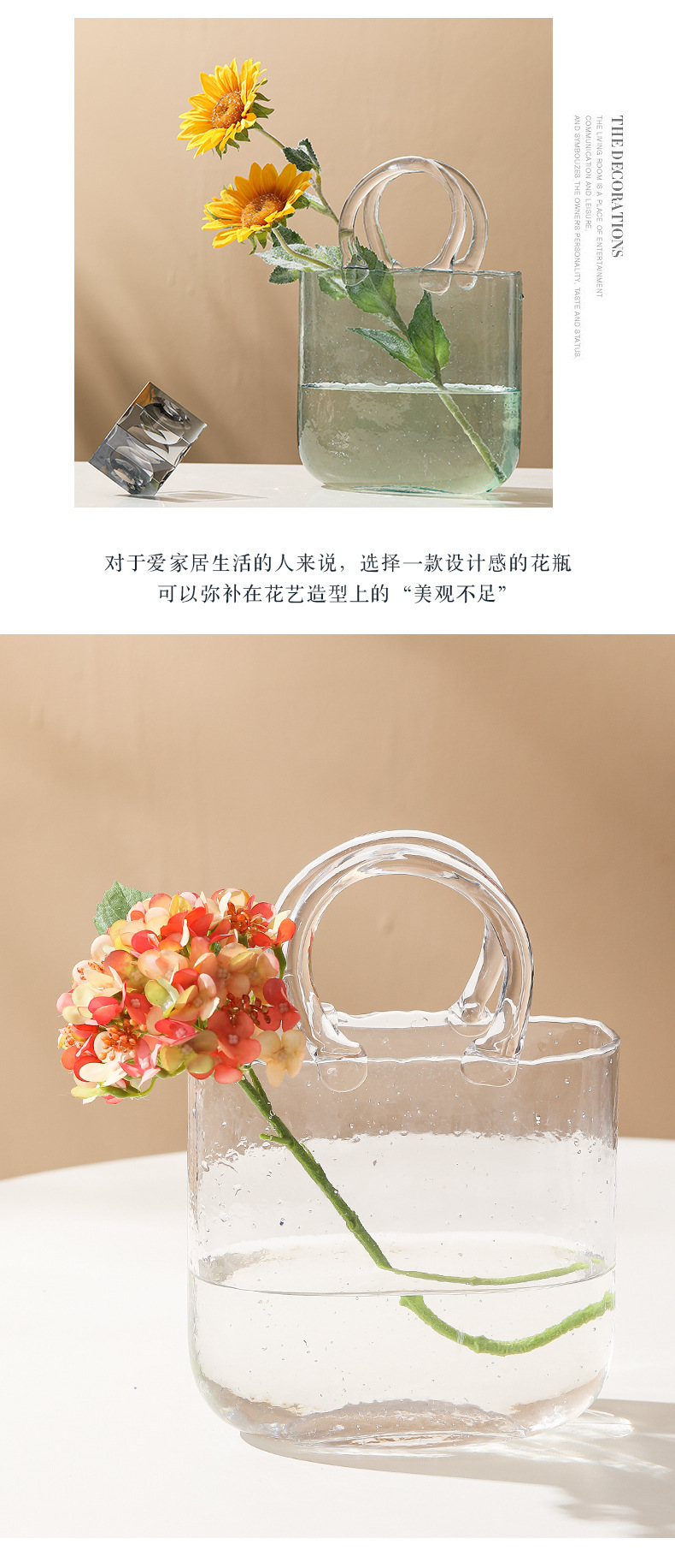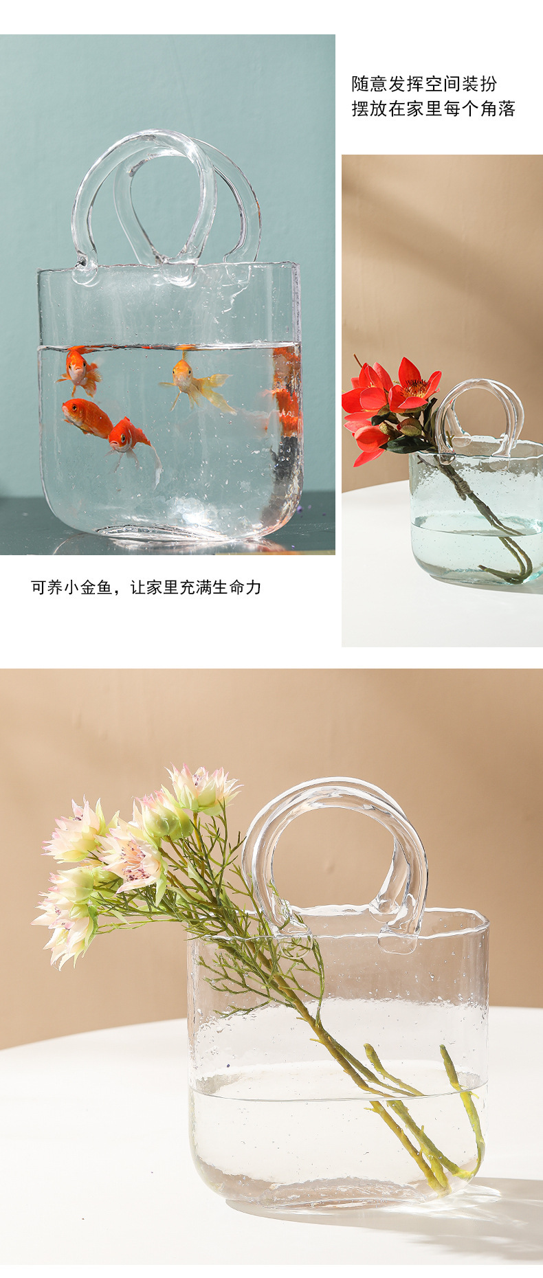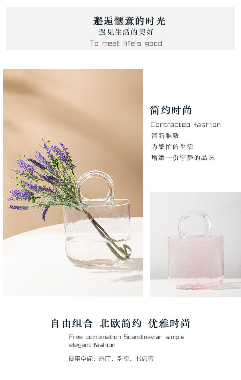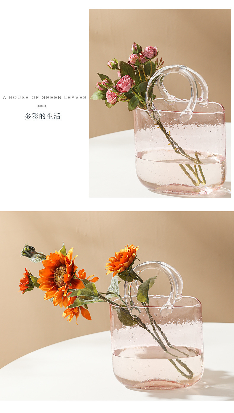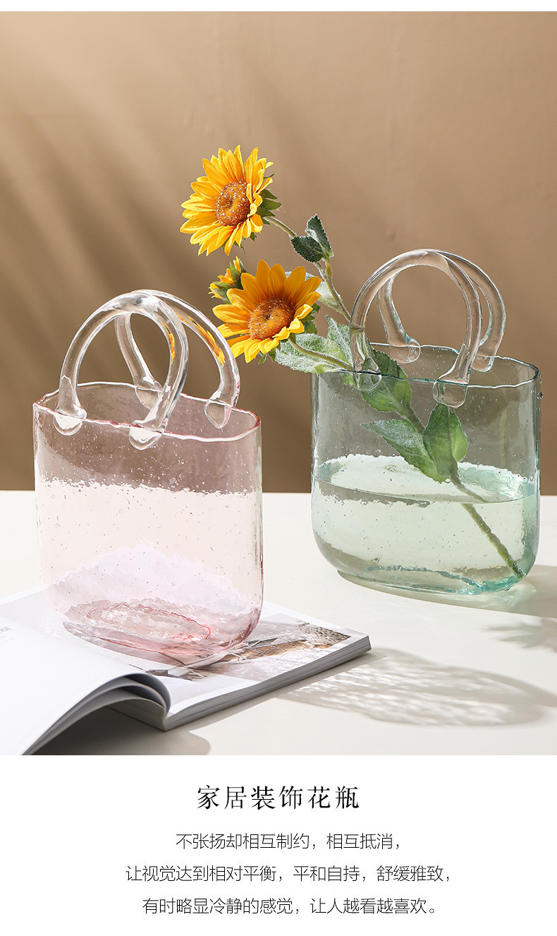 Luz de lujo simple creativo transparente bolso de vidrio florero de alto grado decorativo decoración florero ins estilo de alta apariencia