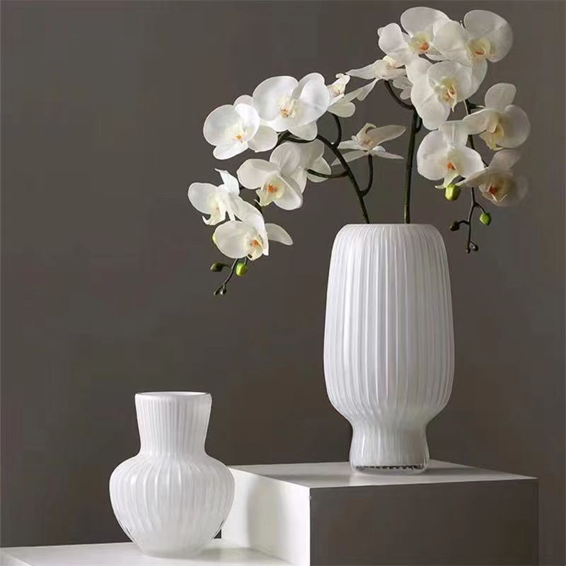 Vaso de vidrio de porcelana blanca nórdica vertical geometría sala de estar mesas de té plegado diseño flor seca decoración de la mesa de comedor