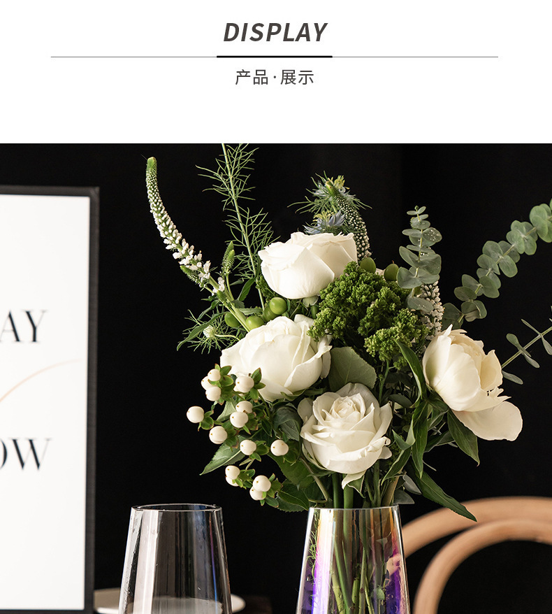 Flores hidropónicas modernas simples lirio decoración de mesa de comedor ornamentos floral vasos de vidrio transparente al por mayor