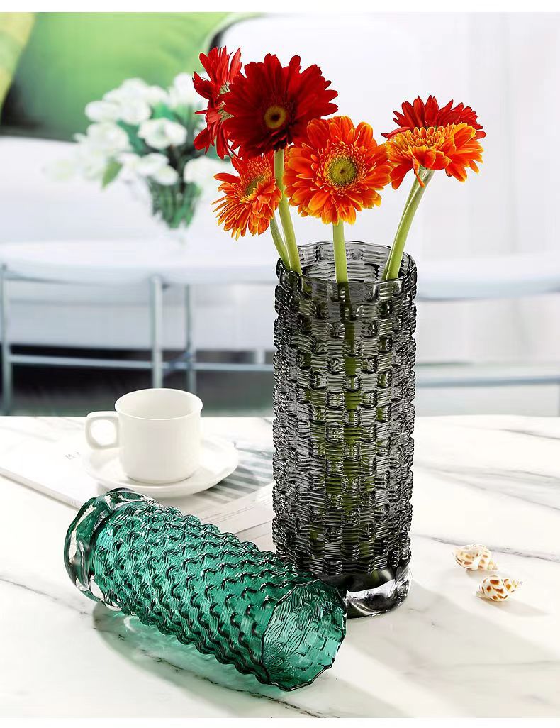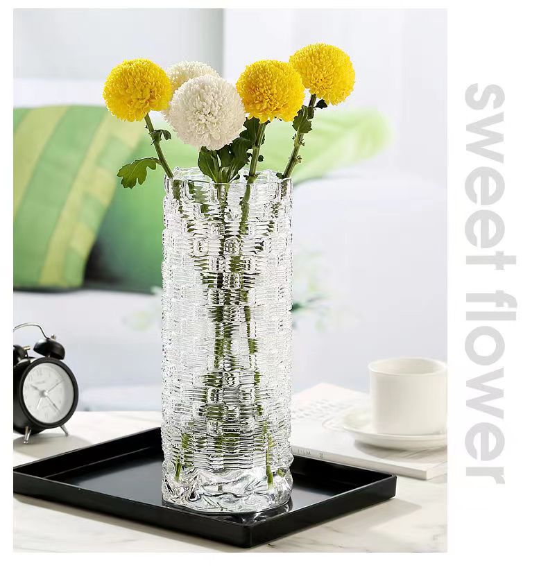 Botella de vidrio de escritorio de sala de estar flor de lujo ligera botella de vidrio de arte inswind rosa de alto nivel de cultivo de agua