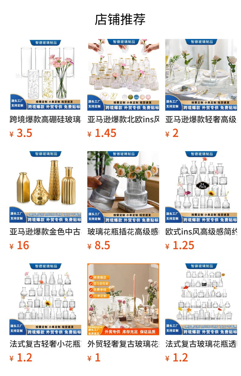 Amazon conjunto de vasijas de vidrio floral de alto nivel sentido retro mini vasijas en el viento de alta belleza adornos