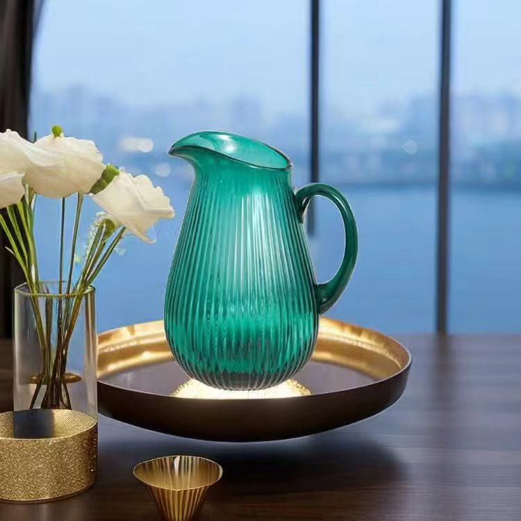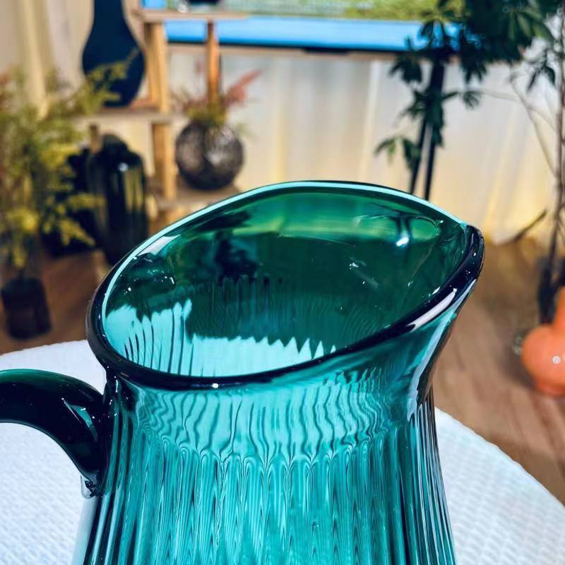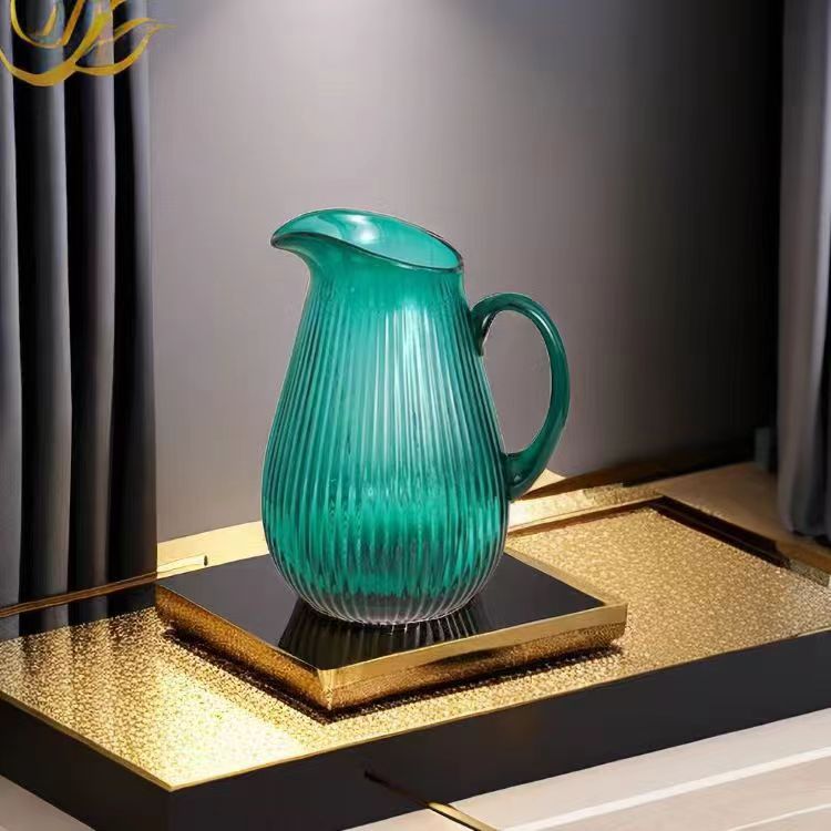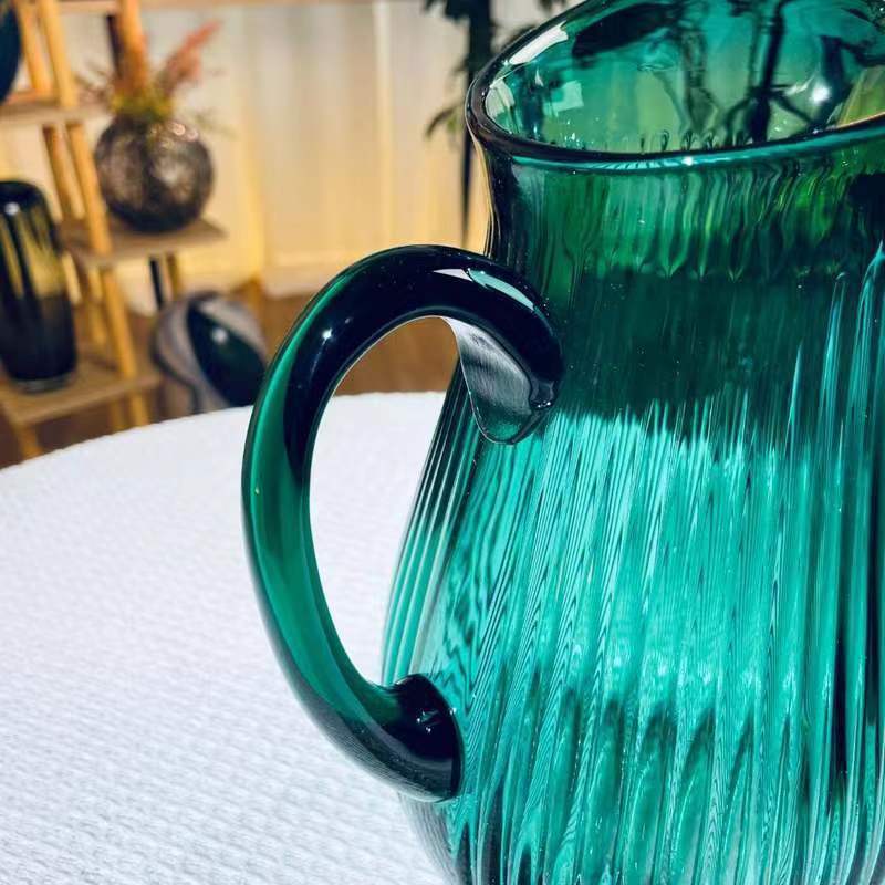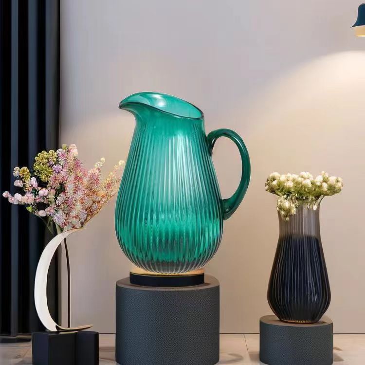Alta sensación de exportación verde esmeralda con mango tetera tetera de agua fría vasija de vidrio lirio ornamentos de flores