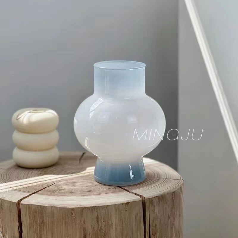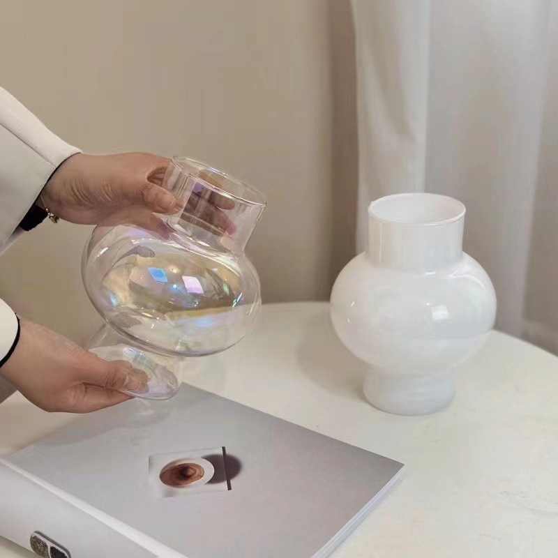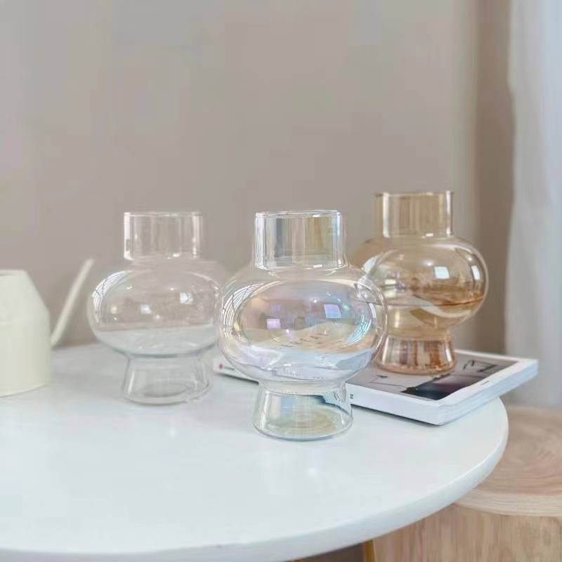 Decoración de alta sensación de nicho popular en línea pequeño adornos floral sala de estar acuoso transparente simple jarrón de vidrio