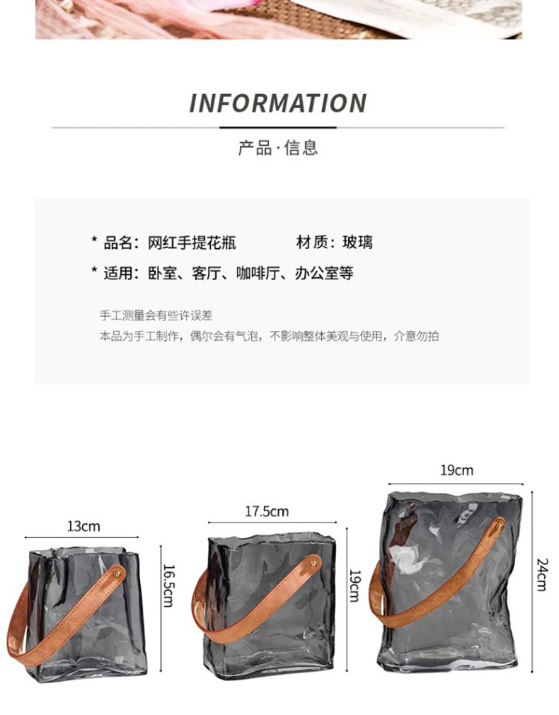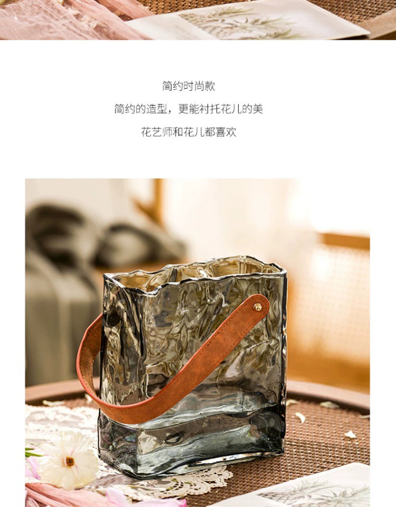 Xiaodongshu mismo bolso florero de vidrio Internet estilo celebridad de alta apariencia sala de estar arreglo floral decoración artesanía