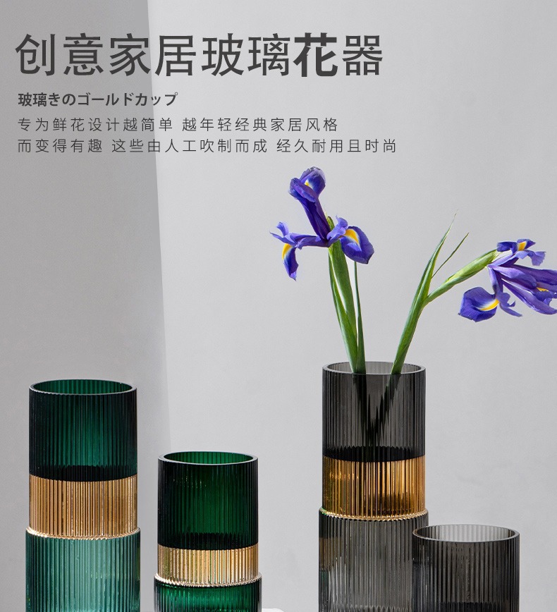 Florero de cristal de metal de lujo ligero de estilo europeo de alta apariencia creativa personalizada sala de estar mesa de comedor arreglo floral decoración artesanía