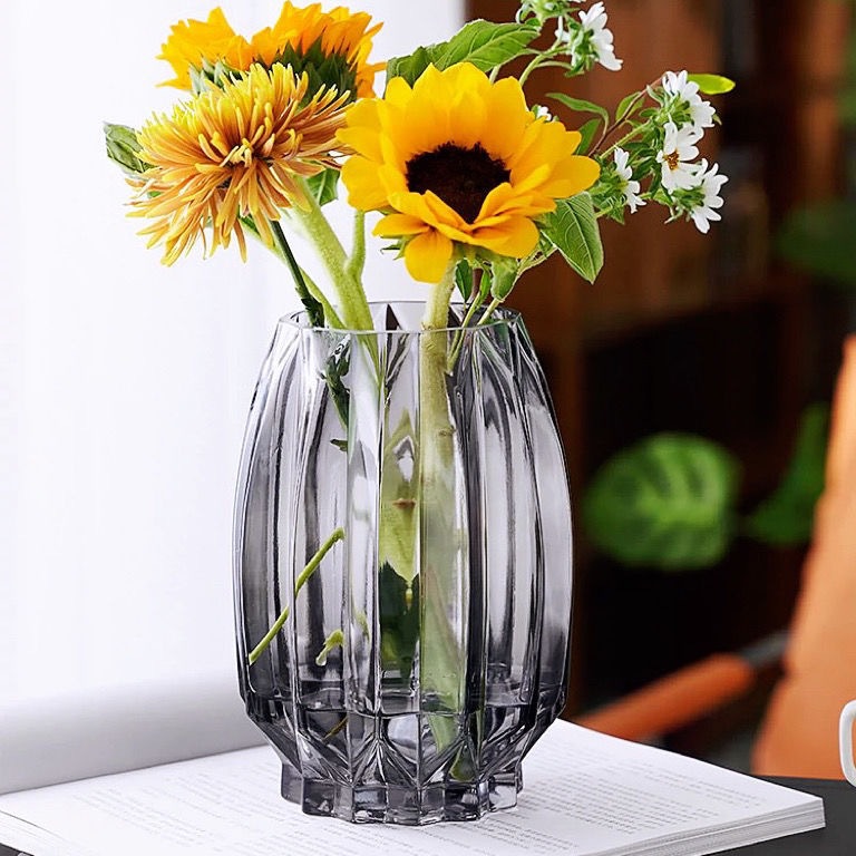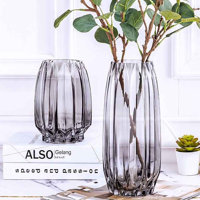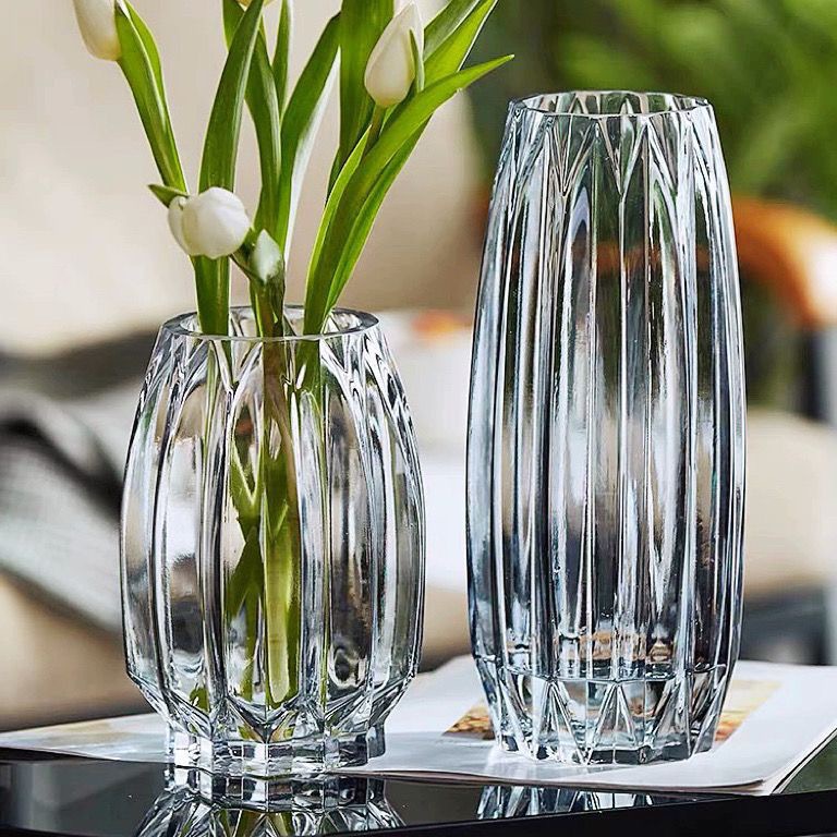 Vaso de vidrio de lujo nórdico, sala de estar transparente, decoración de flores de alto nivel, decoración de flores exquisitas.