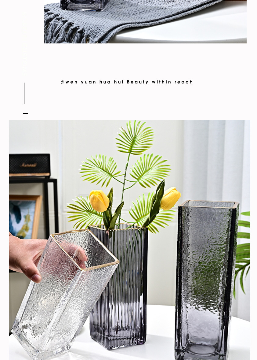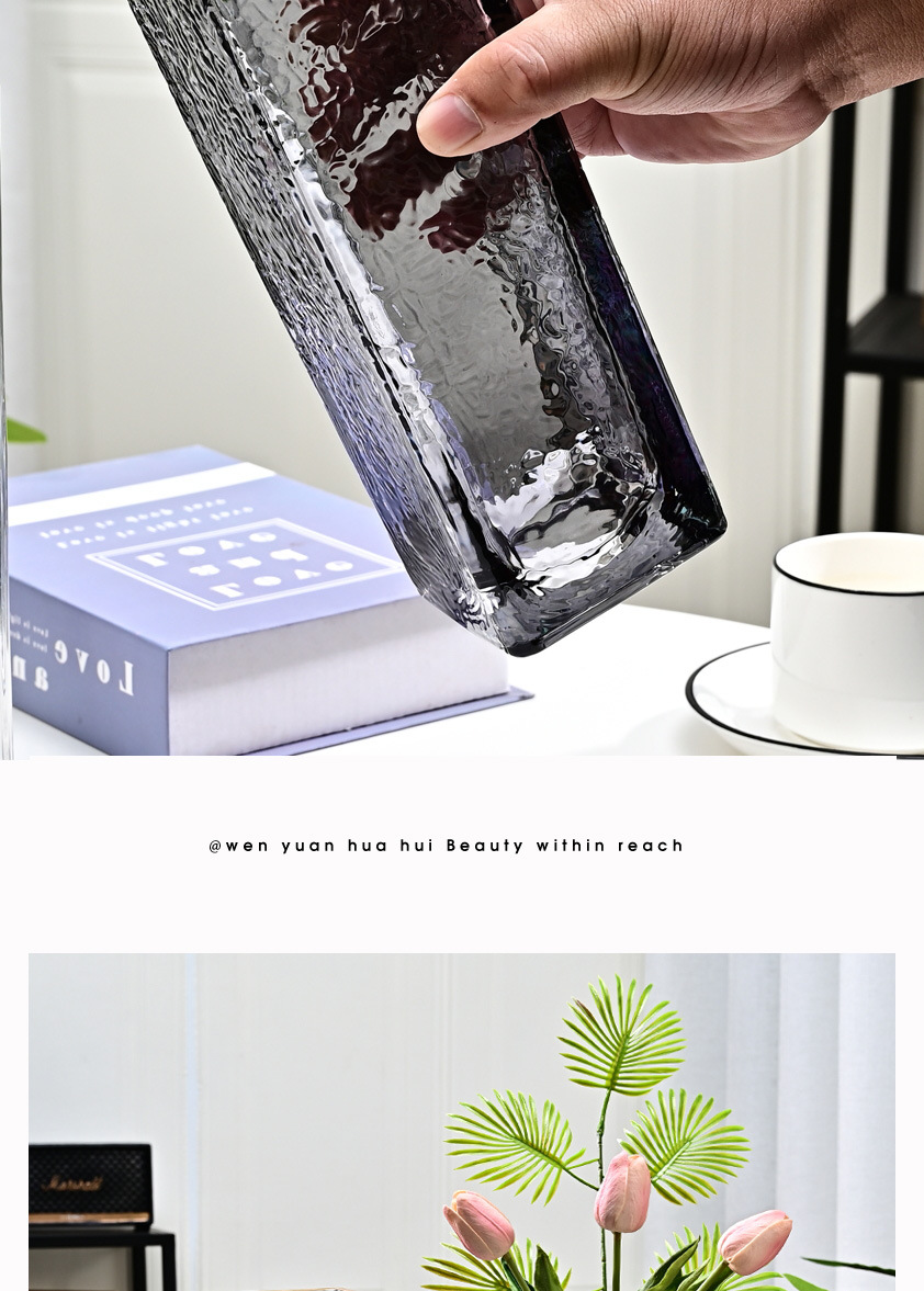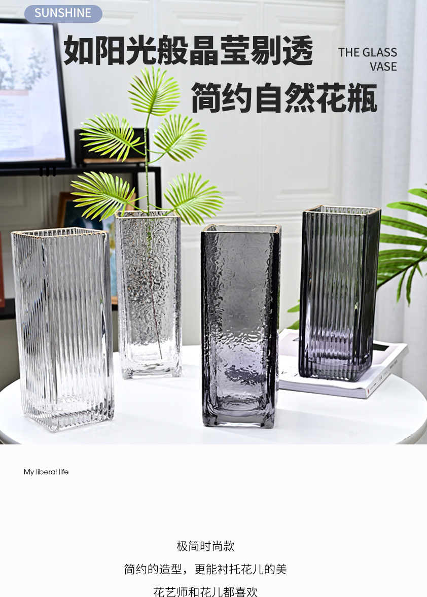 Nórdico simple dibujo de oro Phnom Penh gran jarrón de vidrio rico bambú flores hidropónicas ornamentos simples y modernos