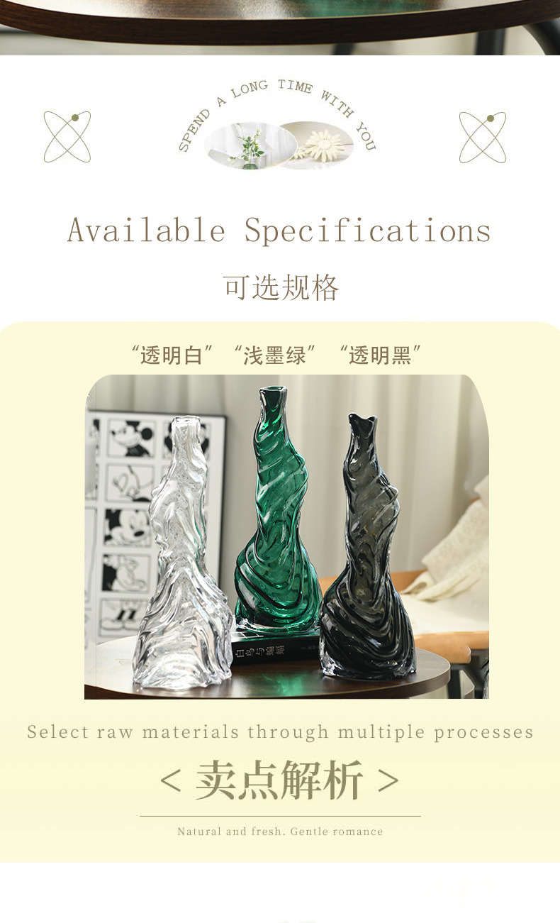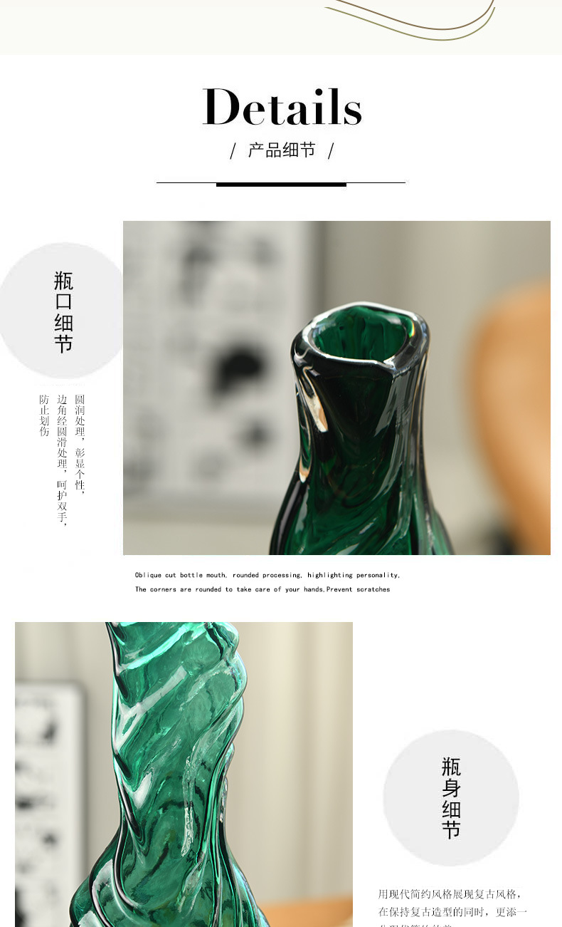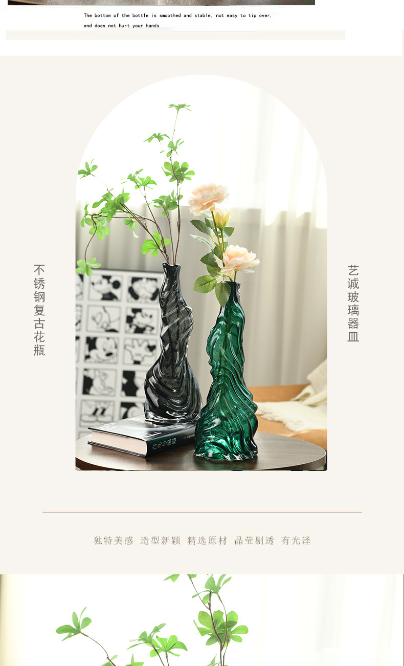 Nuevo ligeramente lujoso vasos de vidrio en el hogar sala de estar balcón mesa de comedor flor floral ornamentos decorativos creativos