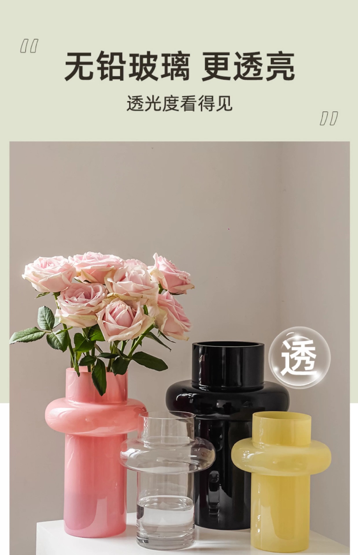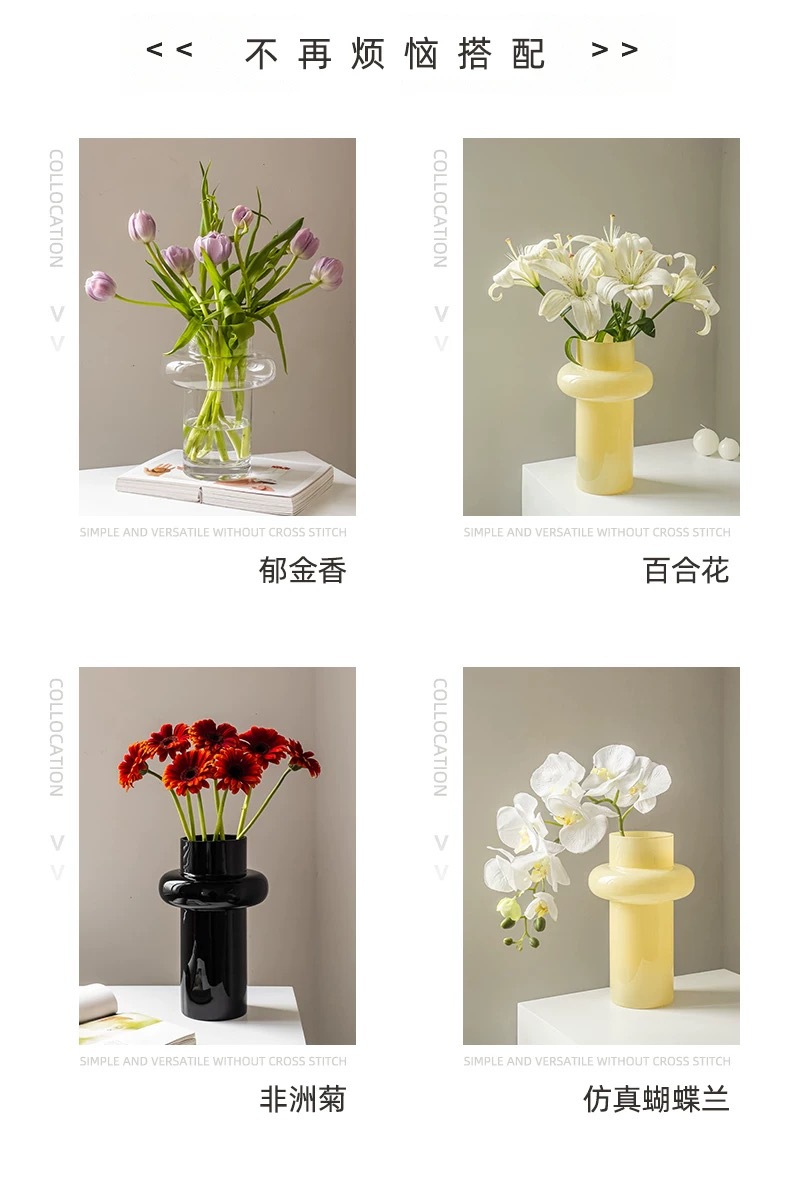 Luz de lujo de alto grado pequeño florero de cristal de la cintura sala de estar arreglo floral Lily Rose rico bambú flor decorativa dispositivo