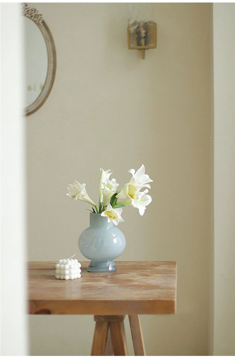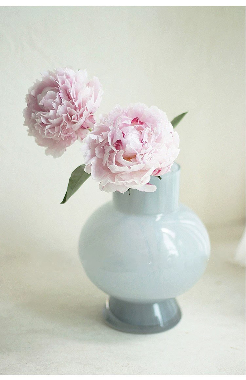 A mediados de la antigua Finton frío gris vidrio florero ins estilo de alto grado estilo francés de alta apariencia sala de estar arreglo floral Decoración