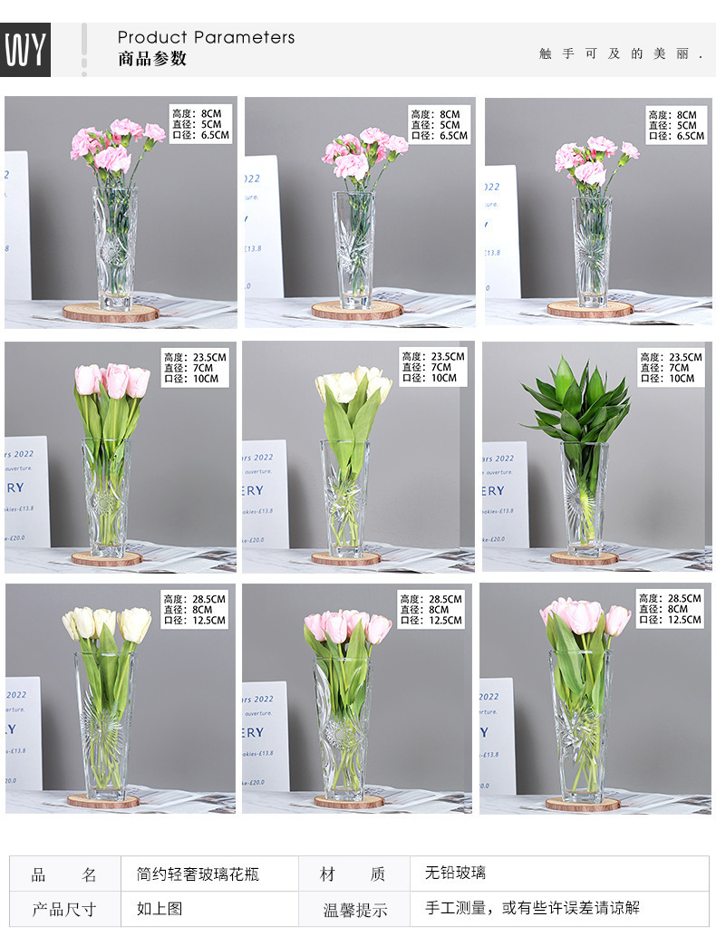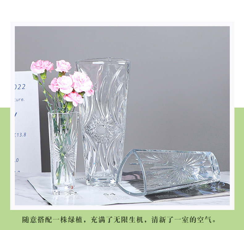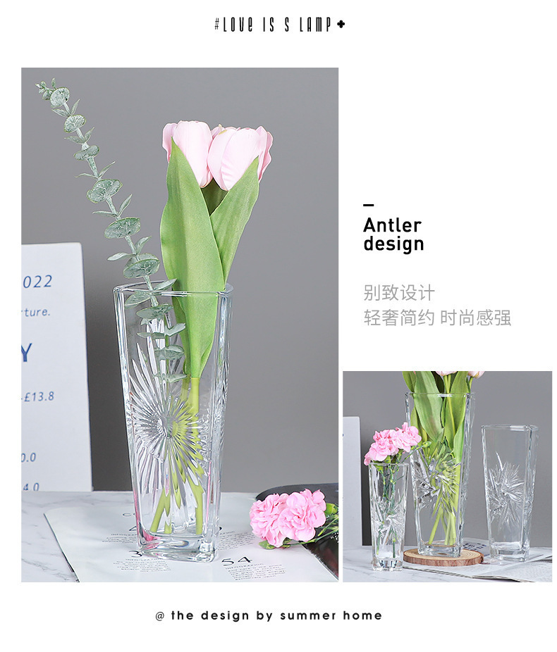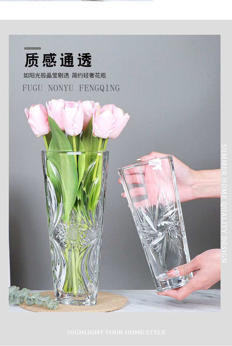 Chino retro simple florero de alta calidad suave transparente sala de estar arreglo de flores decoración creativa Internet celebridad florero de cristal