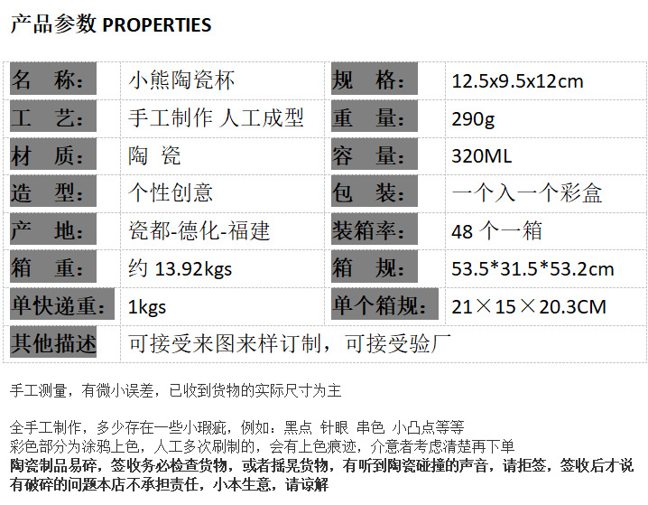 Creativa transfronteriza, linda taza de oso de peluche de alto valor, cerámica de dibujos animados, taza de agua para parejas, regalo de cumpleaños