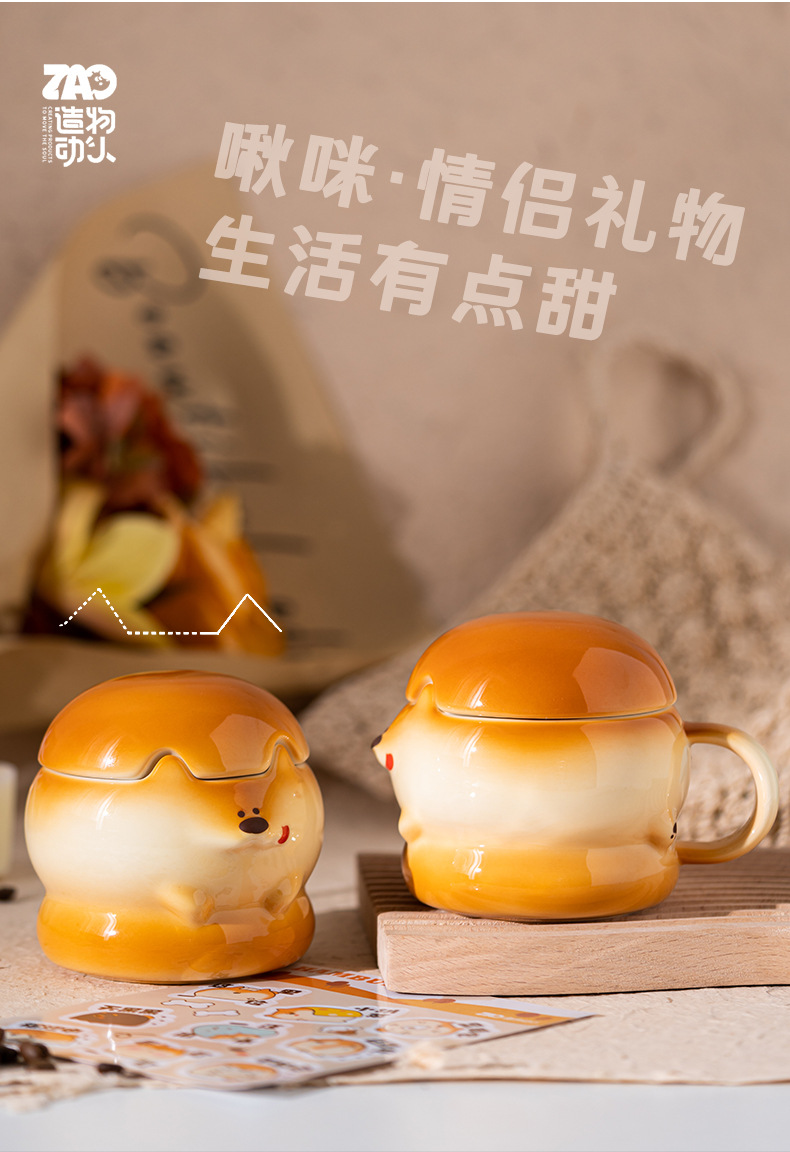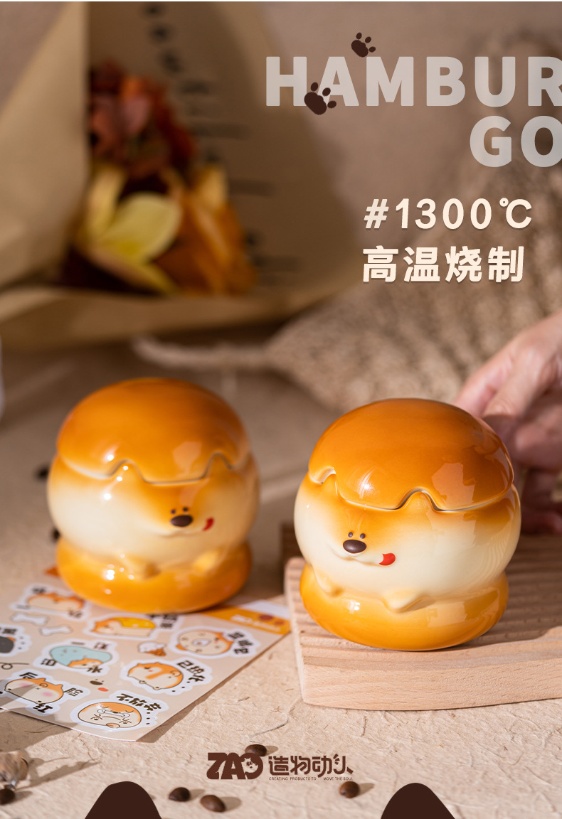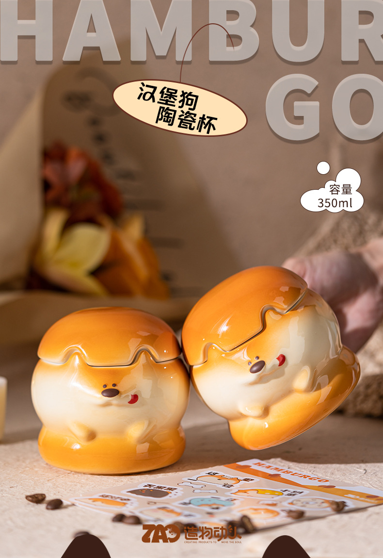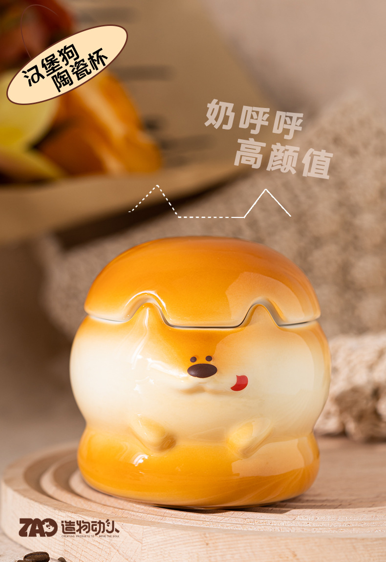 Taza de cerámica de perro hamburguesa de dibujos animados huevos de perro de madera muñeca taza de agua taza de té taza de café de leche taza de desayuno taza