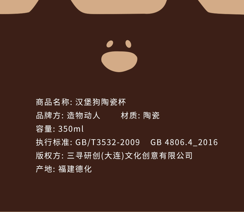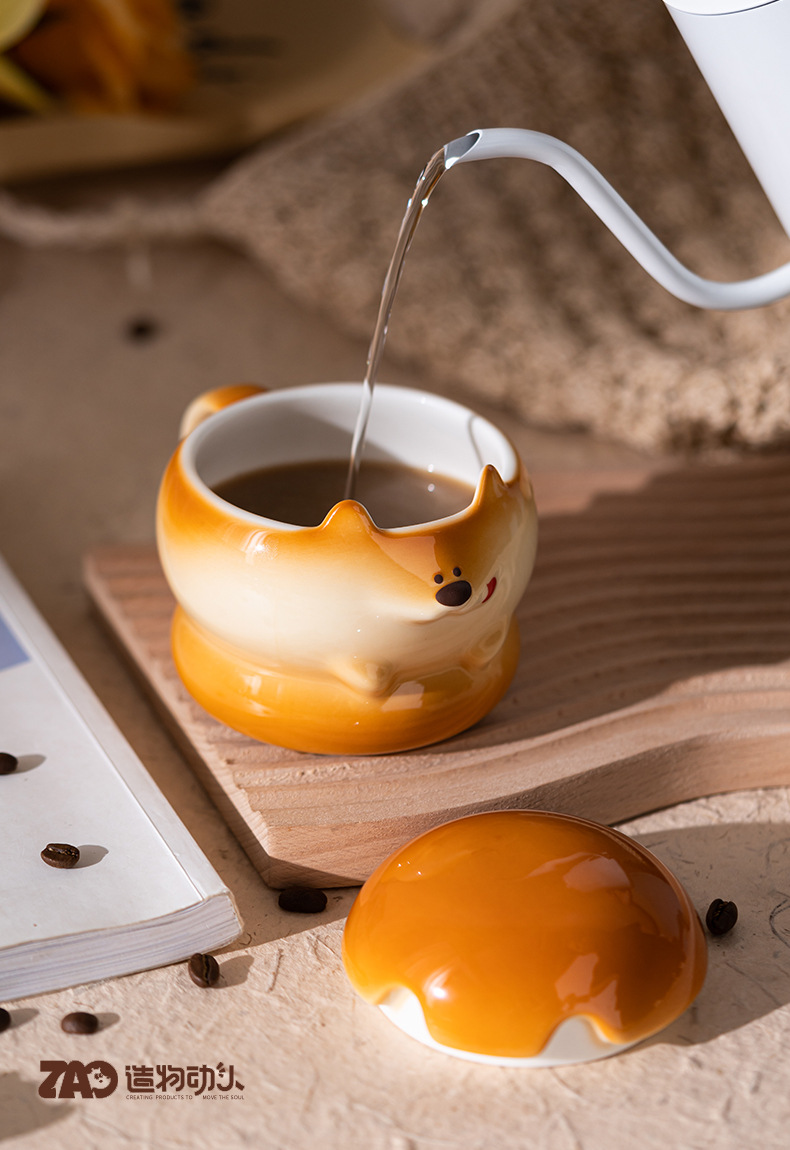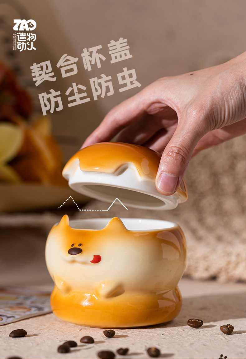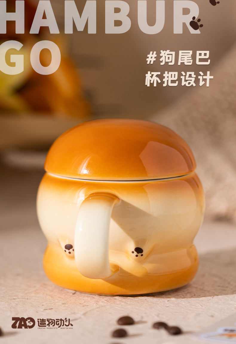 Taza de cerámica de perro hamburguesa de dibujos animados huevos de perro de madera muñeca taza de agua taza de té taza de café de leche taza de desayuno taza