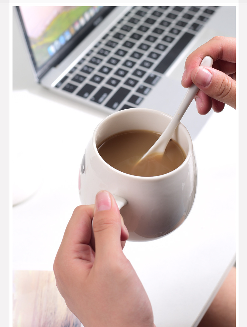 Taza de personalidad creativa Taza de cerámica con cuchara Taza de bebida de pareja de moda Taza de café casera Taza de agua de expresión