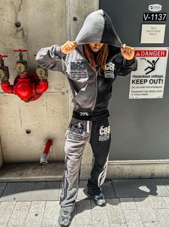 Tendencia transfronteriza europea y americana, suéter con capucha para hombre, suéter y pantalón, chaqueta con cremallera de costura personalizada de la calle, otoño e invierno