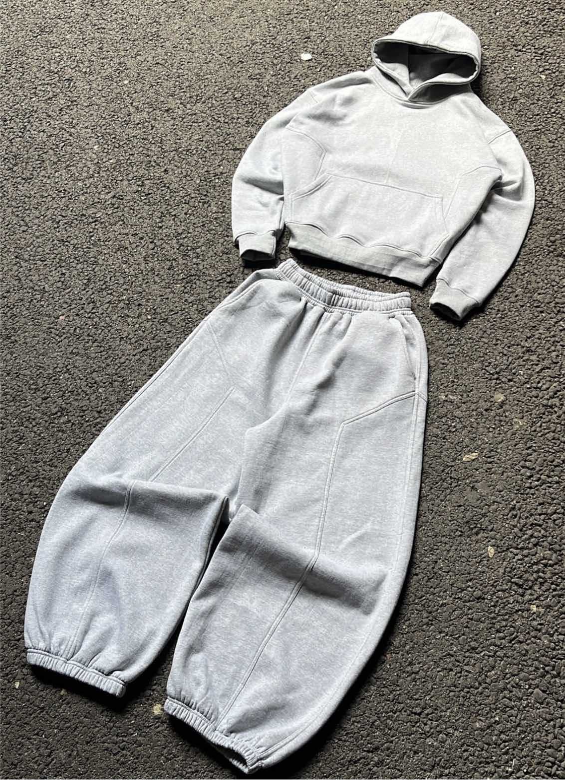 Trajes deportivos de ocio de otoño y invierno transfronterizos American Hooded Sweaters grises sueltos pantalones de piernas anchas pantalones multifuncionales para hombres