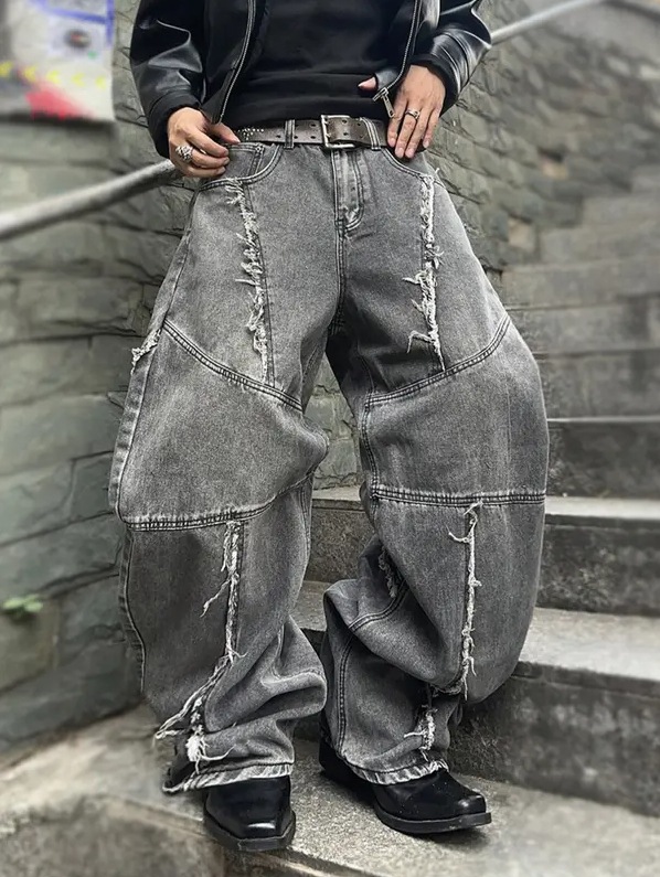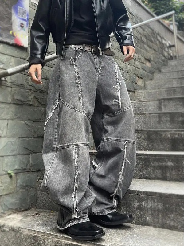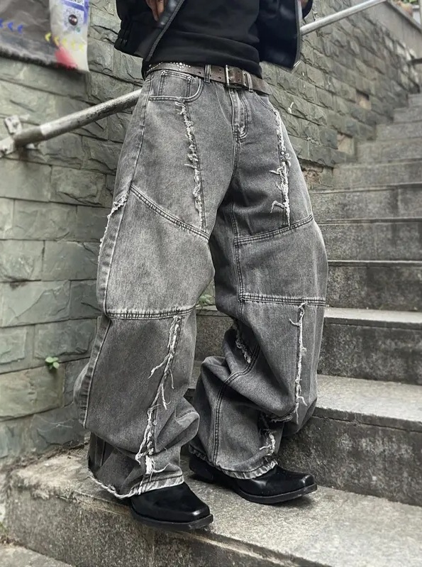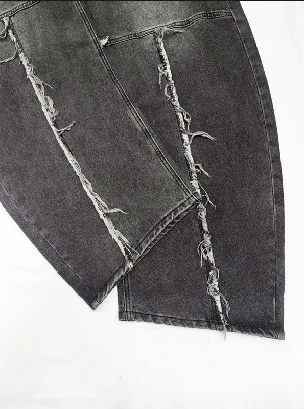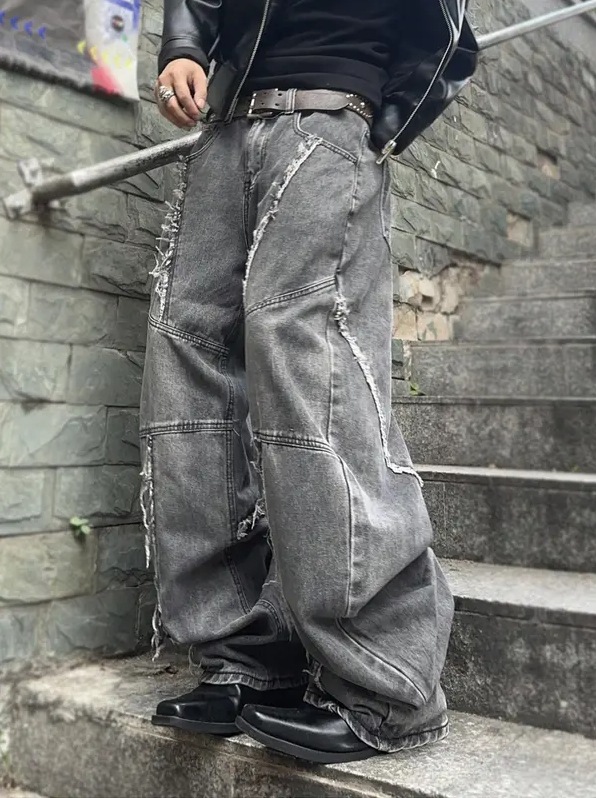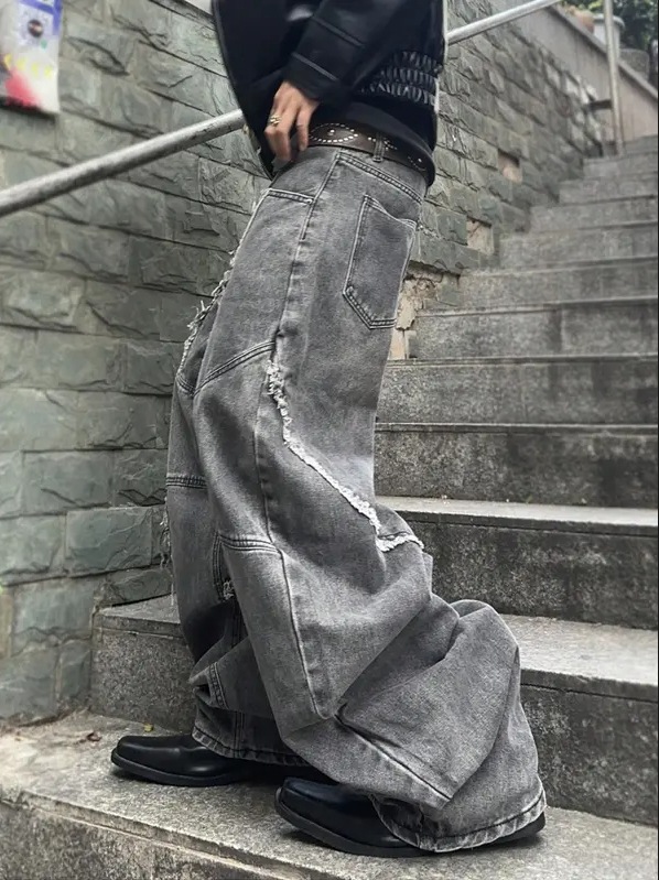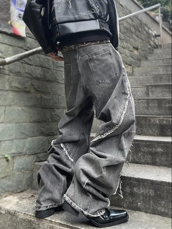 Cross-border tiktok americano retro lavado y jeans desgastados pantalones rectos sueltos de calle con costuras góticas