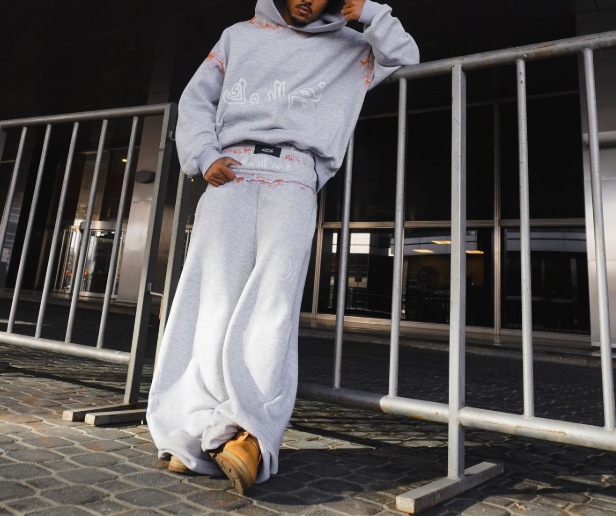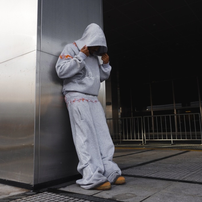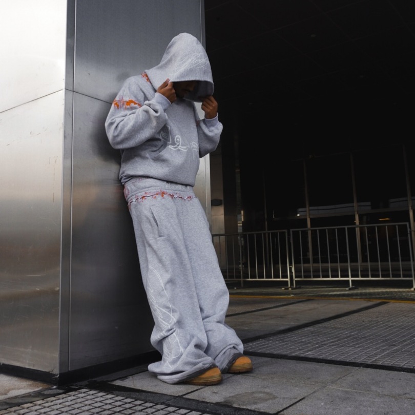 Europa y Estados Unidos explotaron transfronterizos personales calle gris impresión pantalones casuales sueltos de doble cintura pantalones con sudadera con capuz