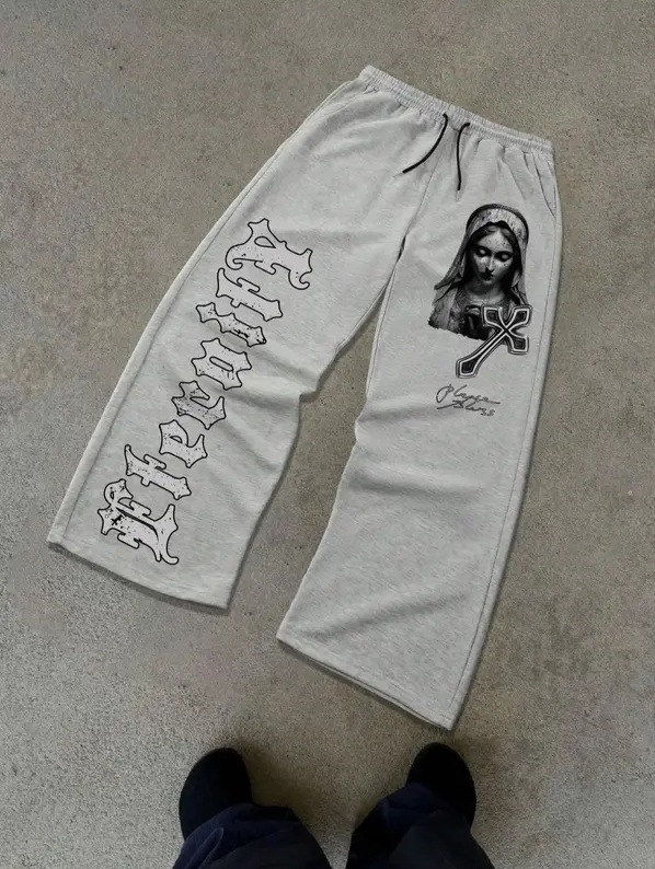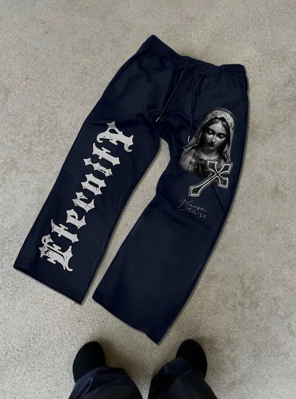 Pantalones informales de pierna recta para hombre, estilo gótico oscuro, hip-hop, pantalones deportivos holgados estampados, joggers con cordón ajustable a la moda.