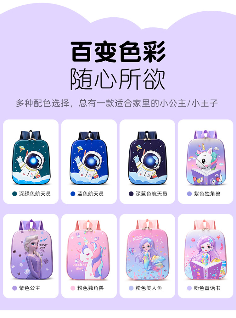 Nueva mochila de jardín de infantes, mochila para niños de concha dura de sirena de dibujos animados, 3-6 años, niños y niñas, mochila para niños, marea 5