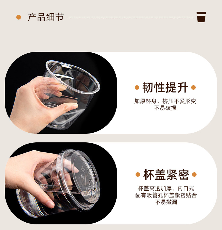 Vaso de plástico para té con leche, vaso desechable para bebidas frías de café, vaso transparente de PET para hielo con tapa, vaso desechable de alta transparencia para bebidas