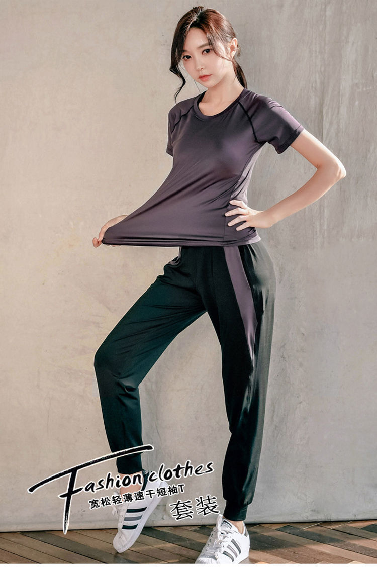 Ropa de yoga sala traje deportivo mujer talla grande suelta verano nuevo paso de carrera matutina celebridad de Internet ropa de secado rápido comercio al por mayor
