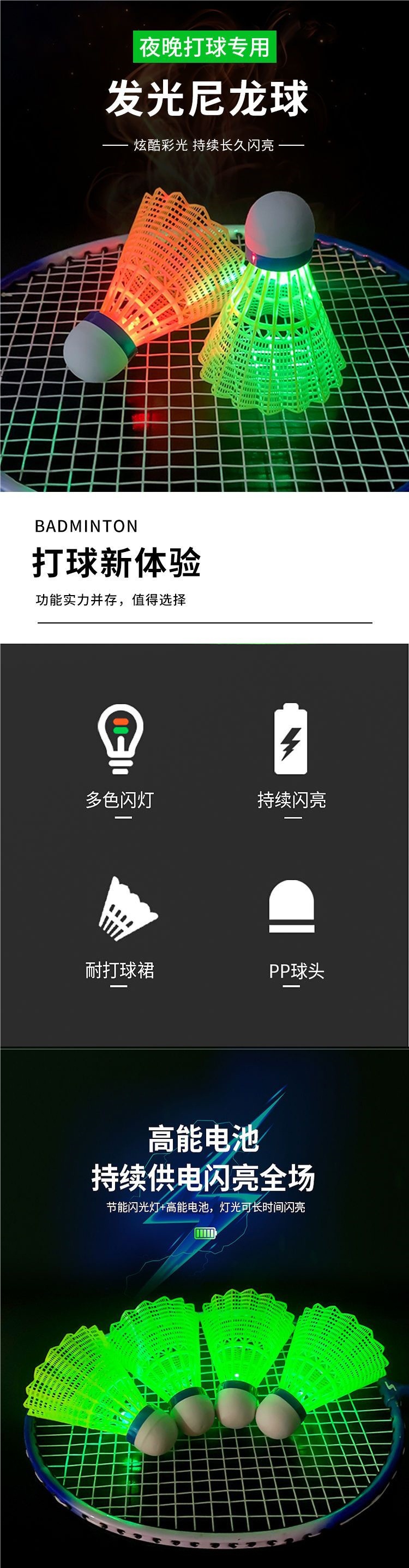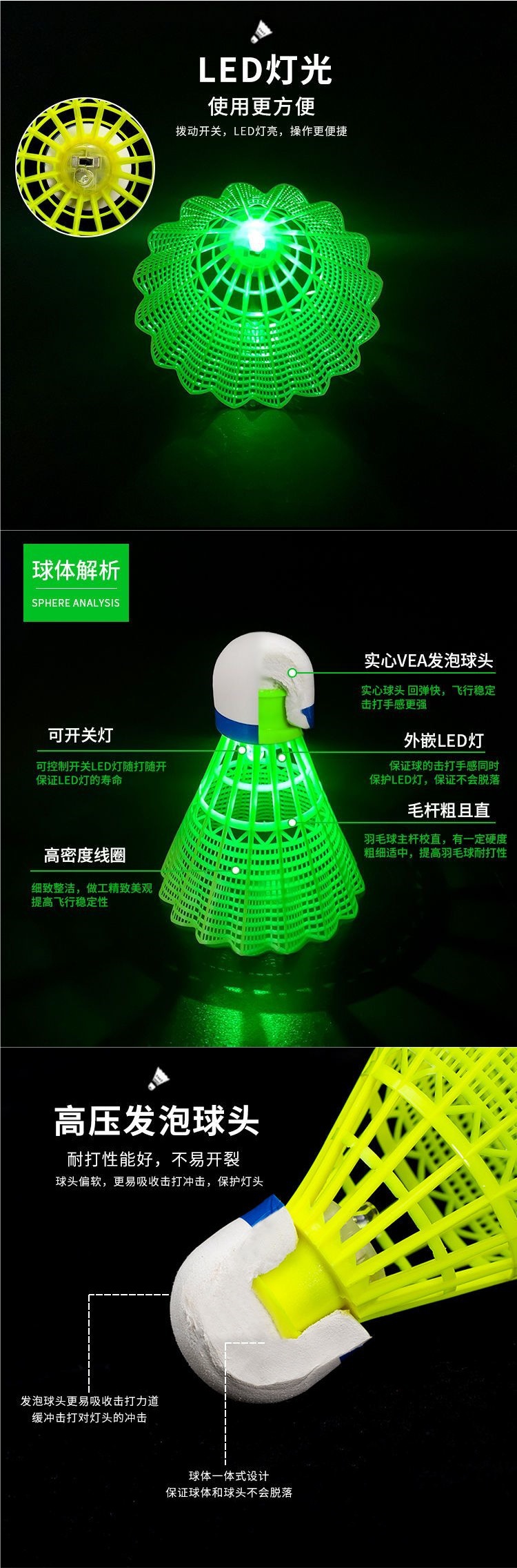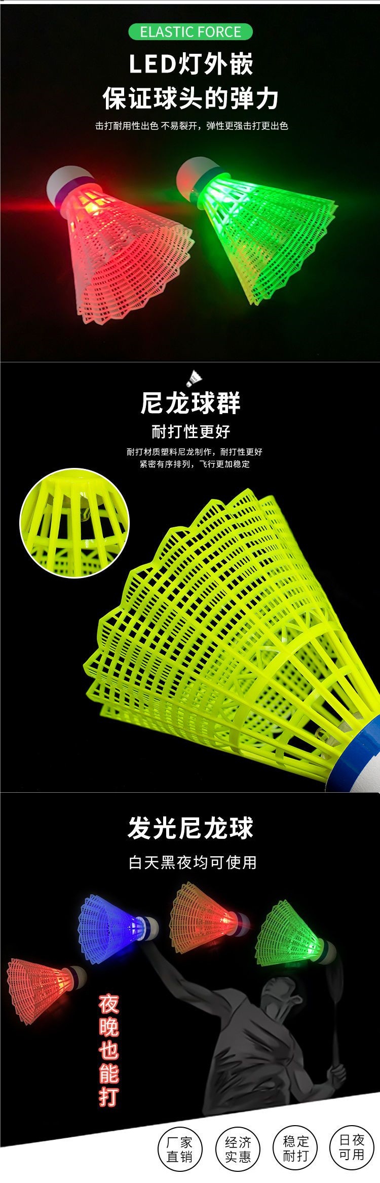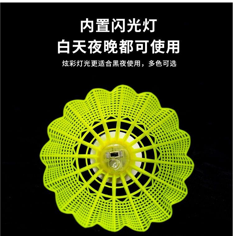 Bádminton luminoso con lámparas LED de color resistente a los golpes bola de plástico de nylon de alta resistencia a prueba de viento no se rompe por la noche