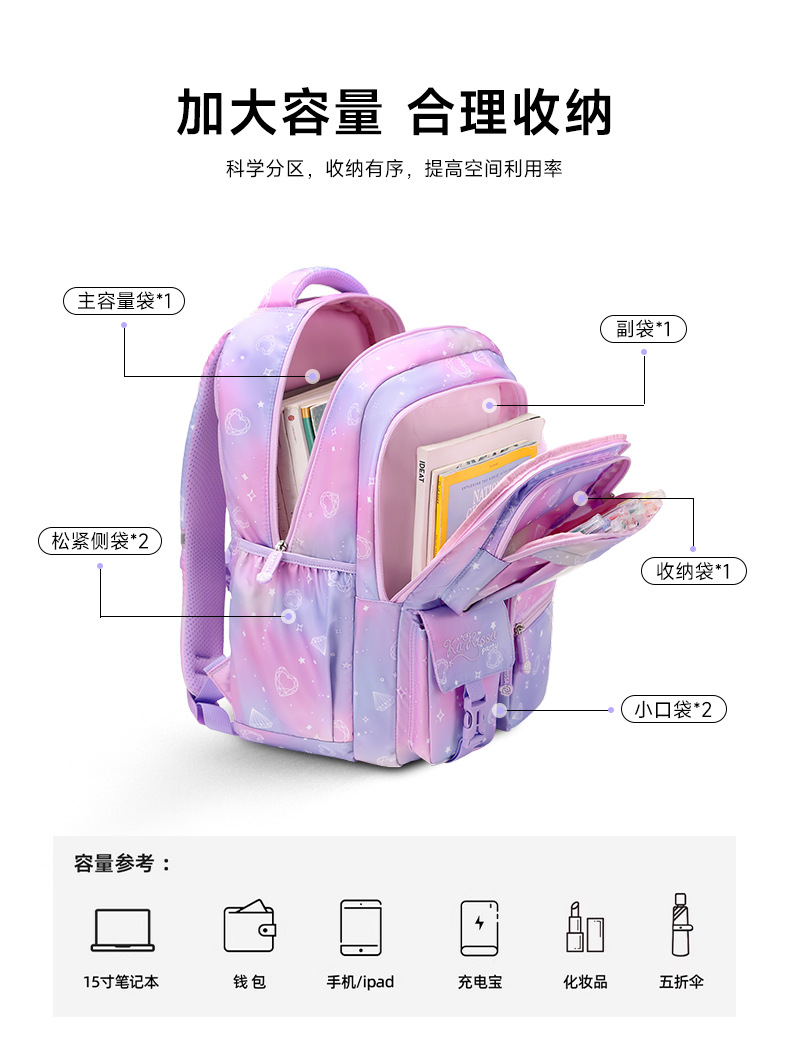 Nueva princesa rosa mochila escolar para niños mochila de niñas mochila de estudiantes de secundaria de gran capacidad