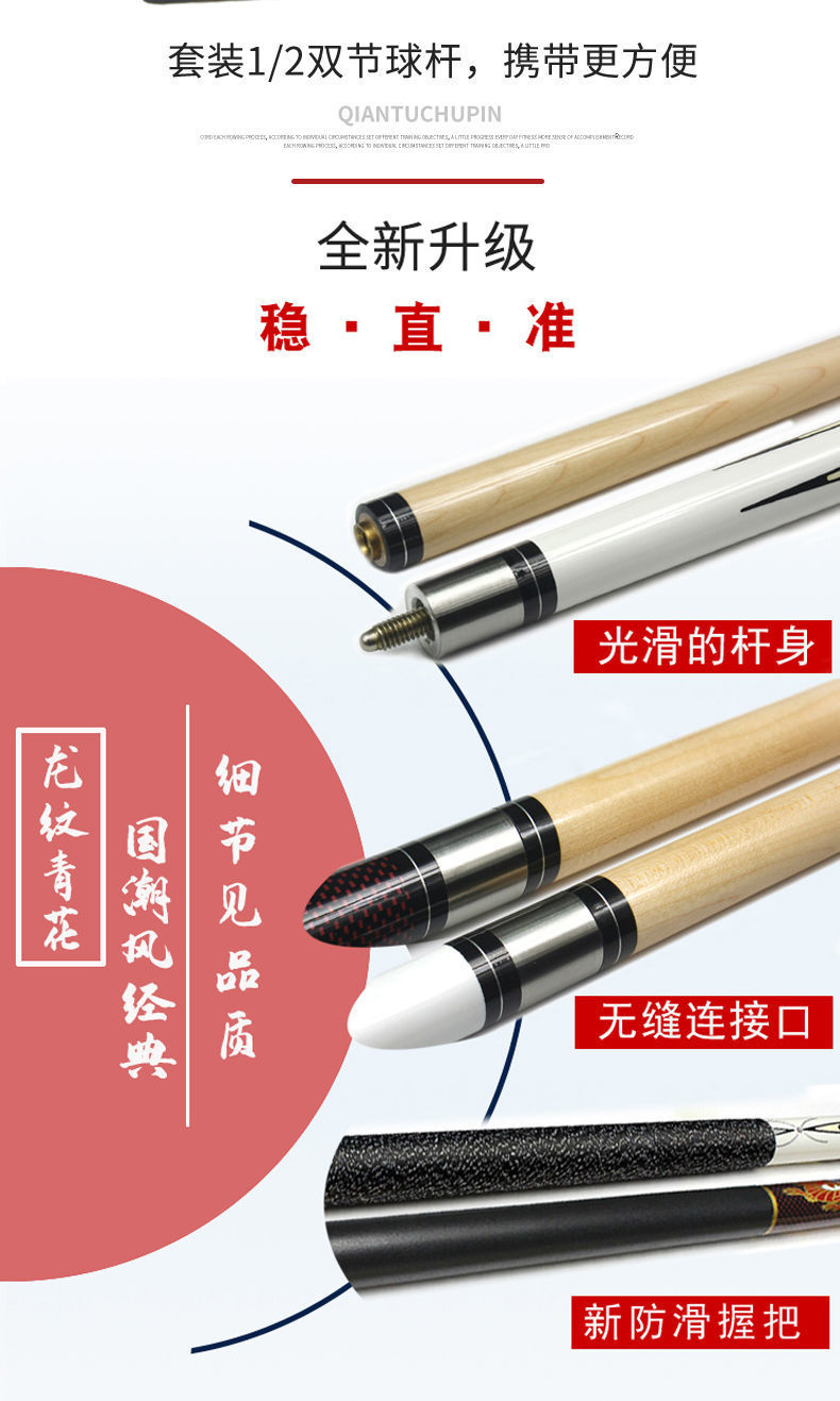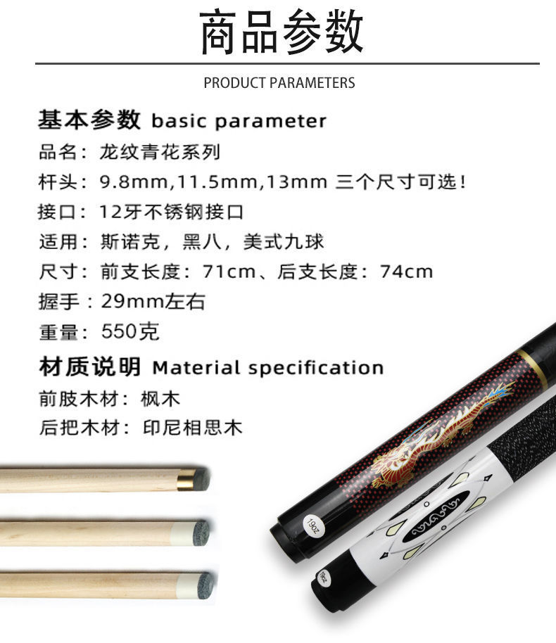 CE estampado dragón azul y flor taco de billar cabeza pequeña cabeza media cabeza grande cabeza de snooker negro ocho nueve nueve bolas 11.5 taco de mesa fábrica