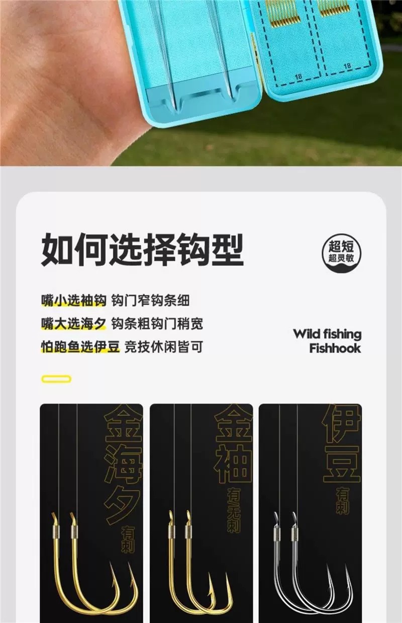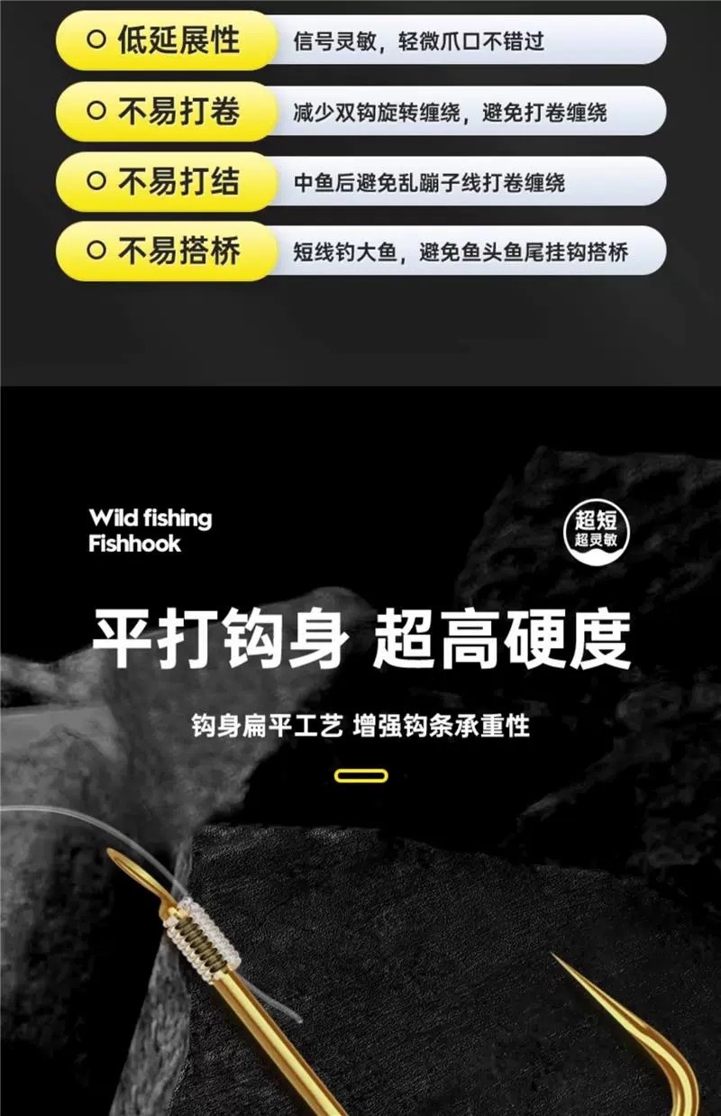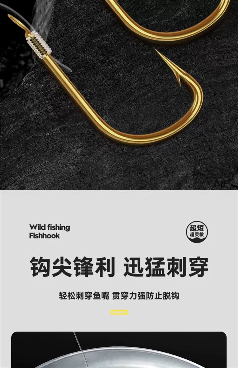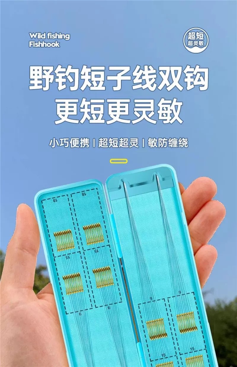 Línea de seda de manga de oro, línea de mar, gancho de pesca de doble gancho, productos terminados, gancho de pesca de arroyos salvajes, comercio exterior.