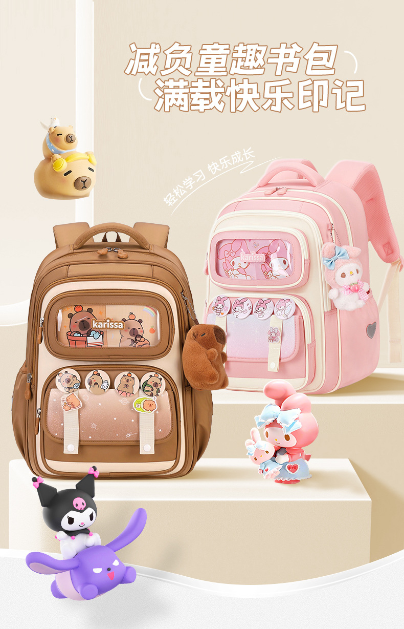 Kapibala mochilas escolares para niñas, estudiantes de primaria, grados 3 1-6, nuevas niñas, protección de la columna, reducción de la carga, huevos lindos, hombros