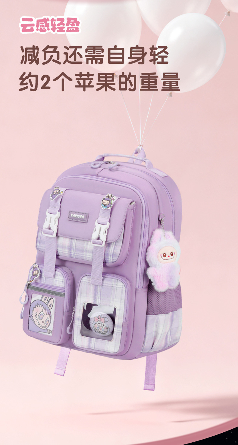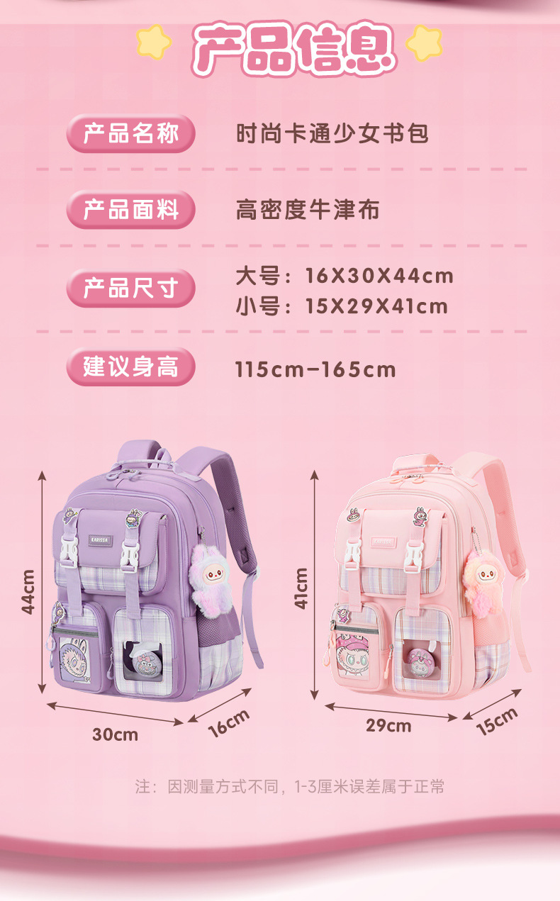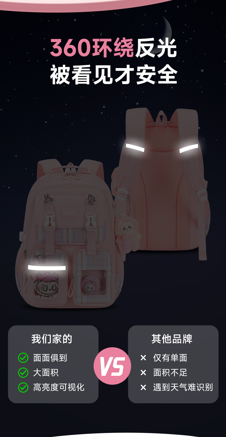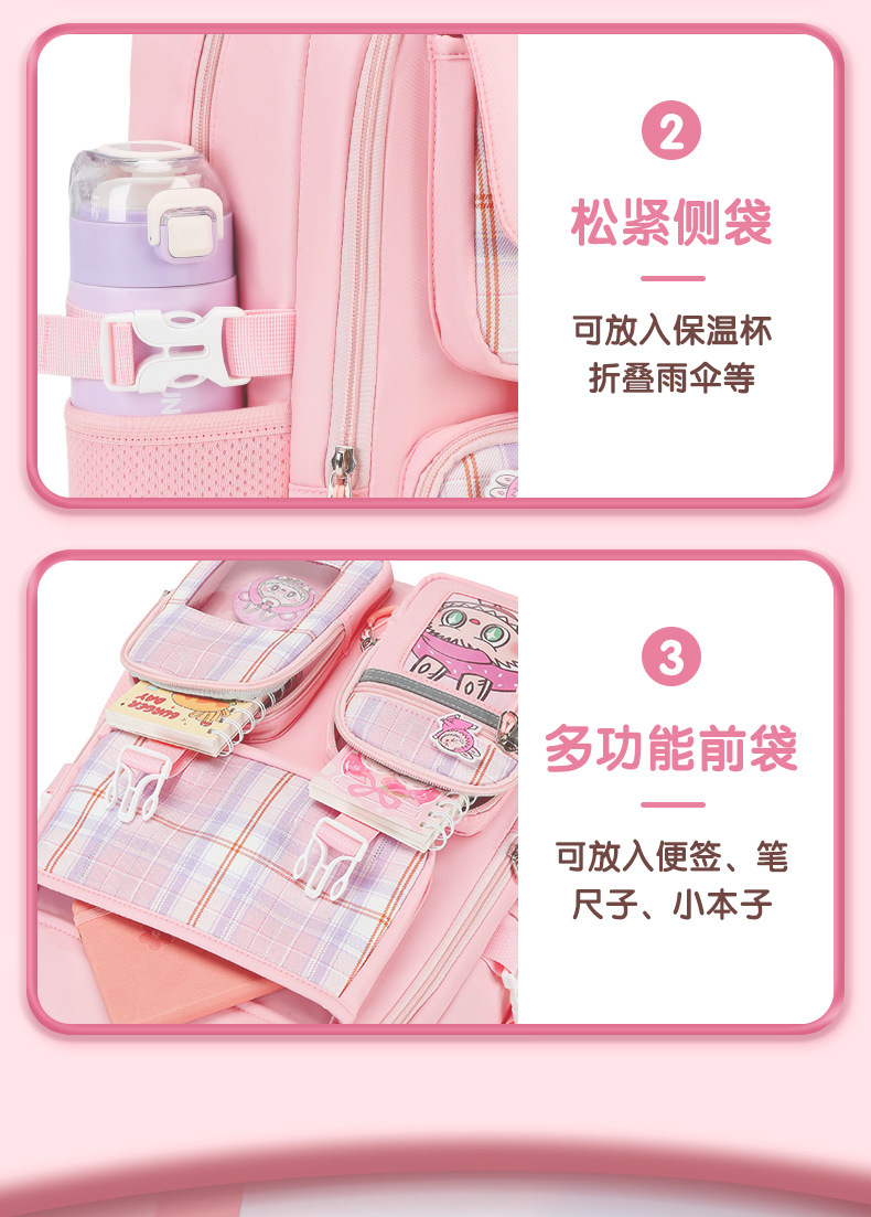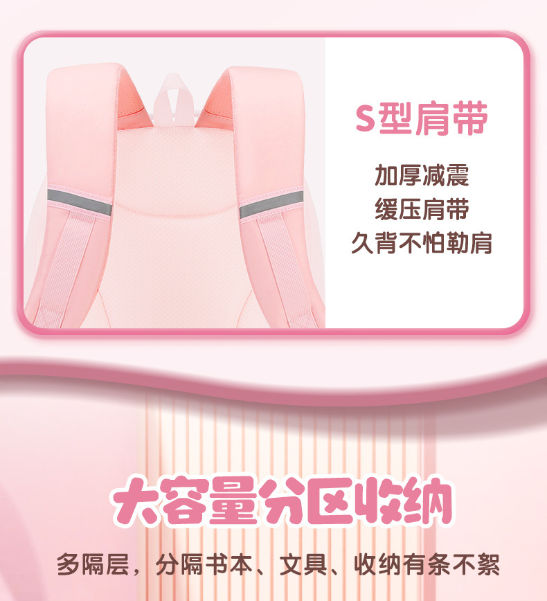 Nueva mochila de escuela primaria mochila de niñas mochila de hombro de gran capacidad para reducir la carga ligera multi-compartimiento niñas de alto valor facial