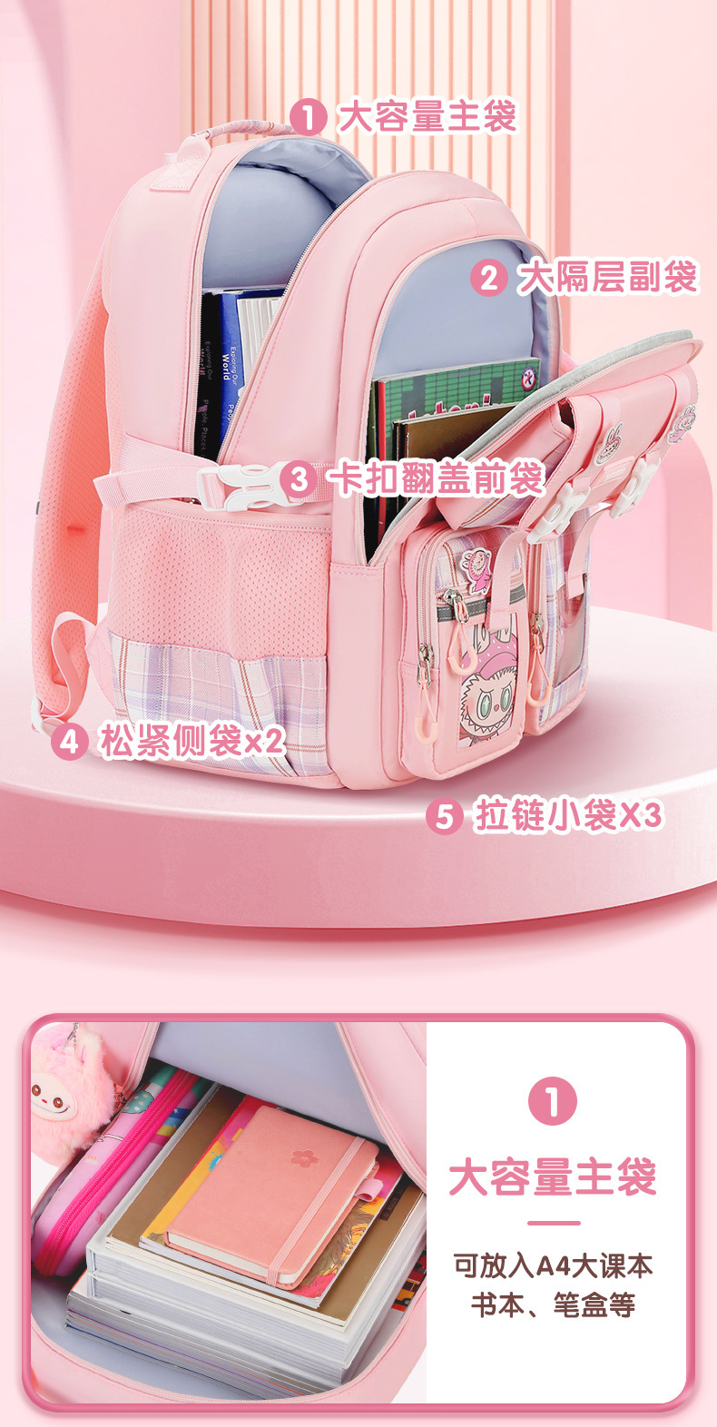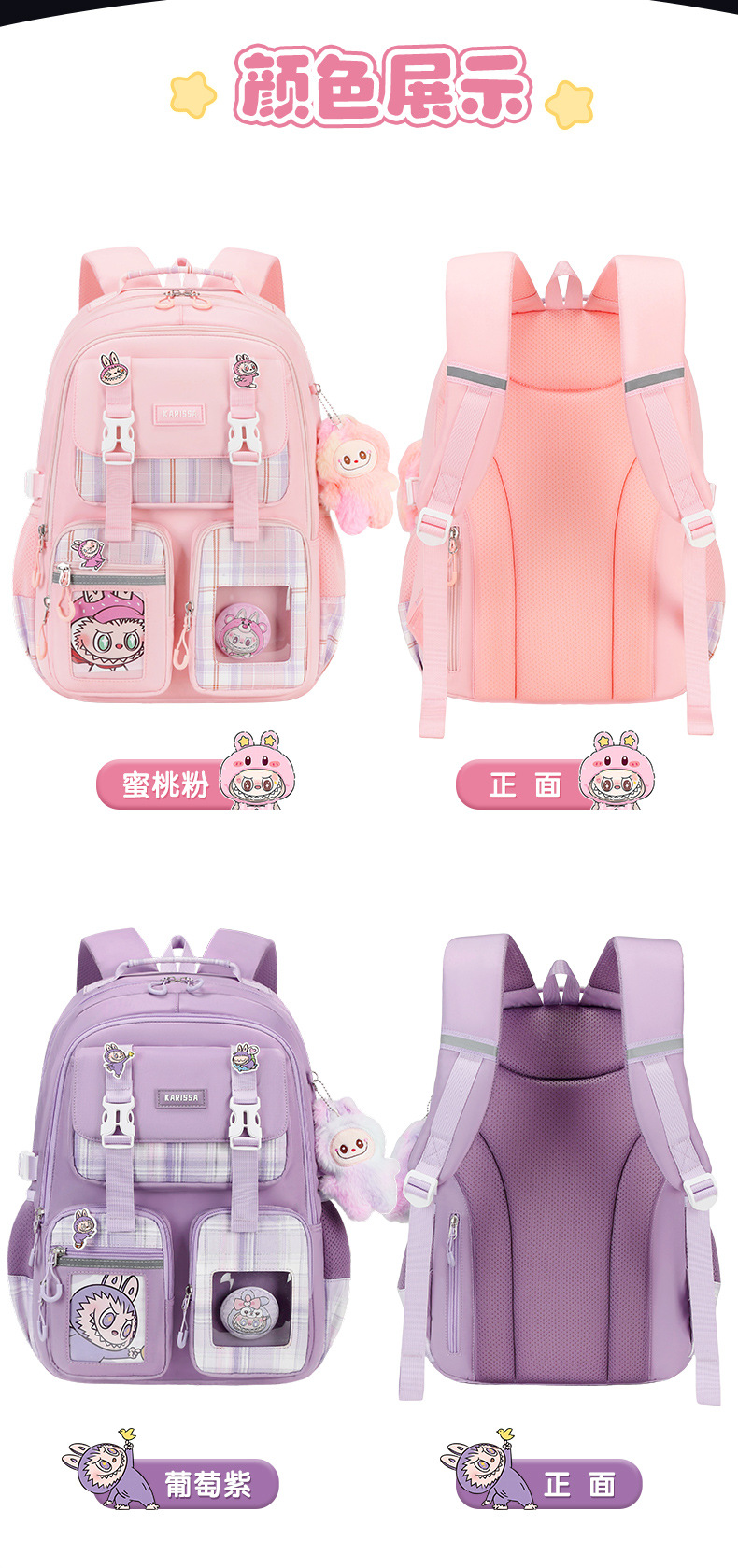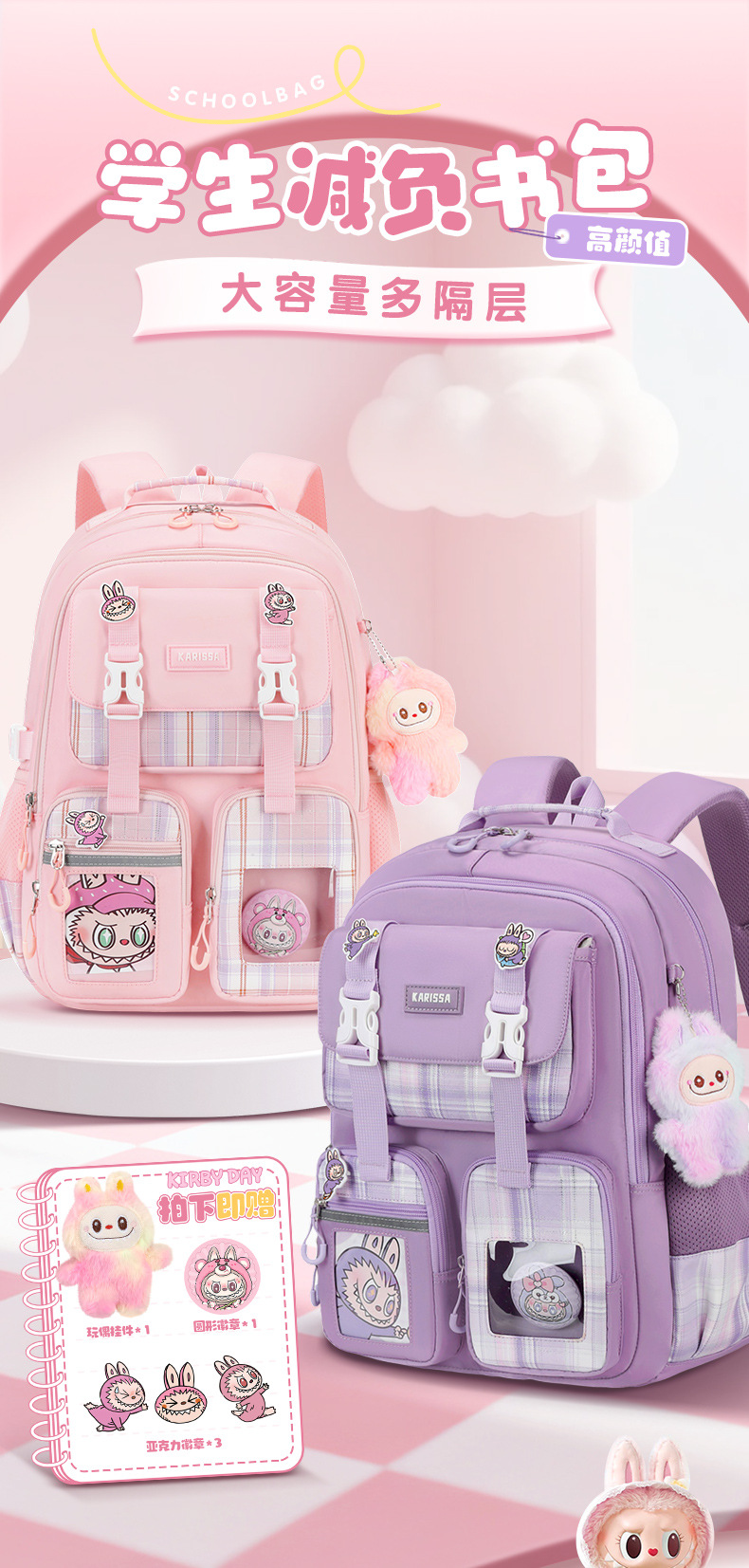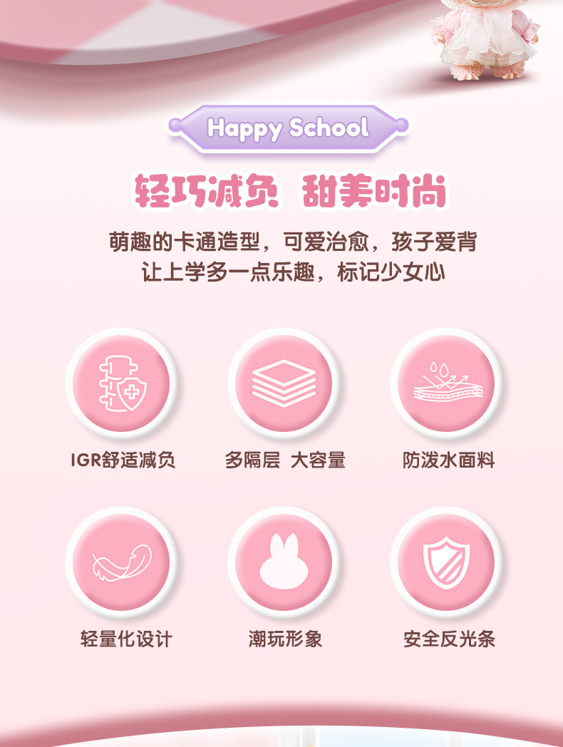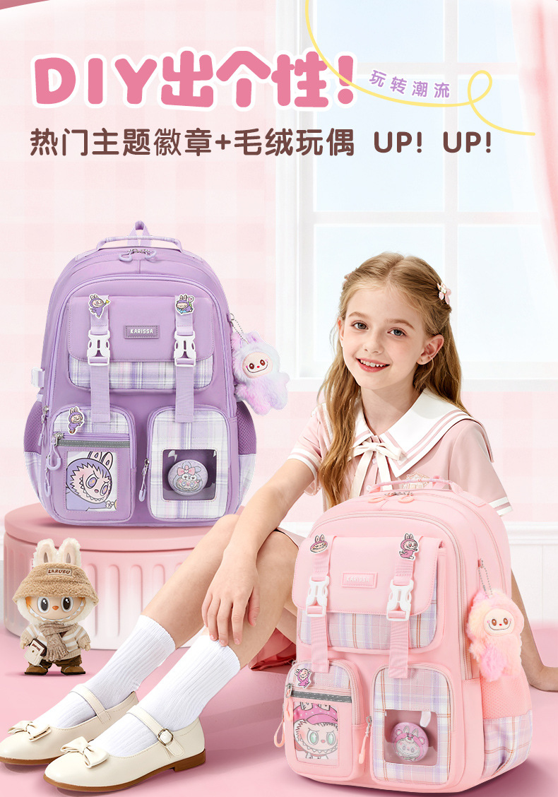 Nueva mochila de escuela primaria mochila de niñas mochila de hombro de gran capacidad para reducir la carga ligera multi-compartimiento niñas de alto valor facial