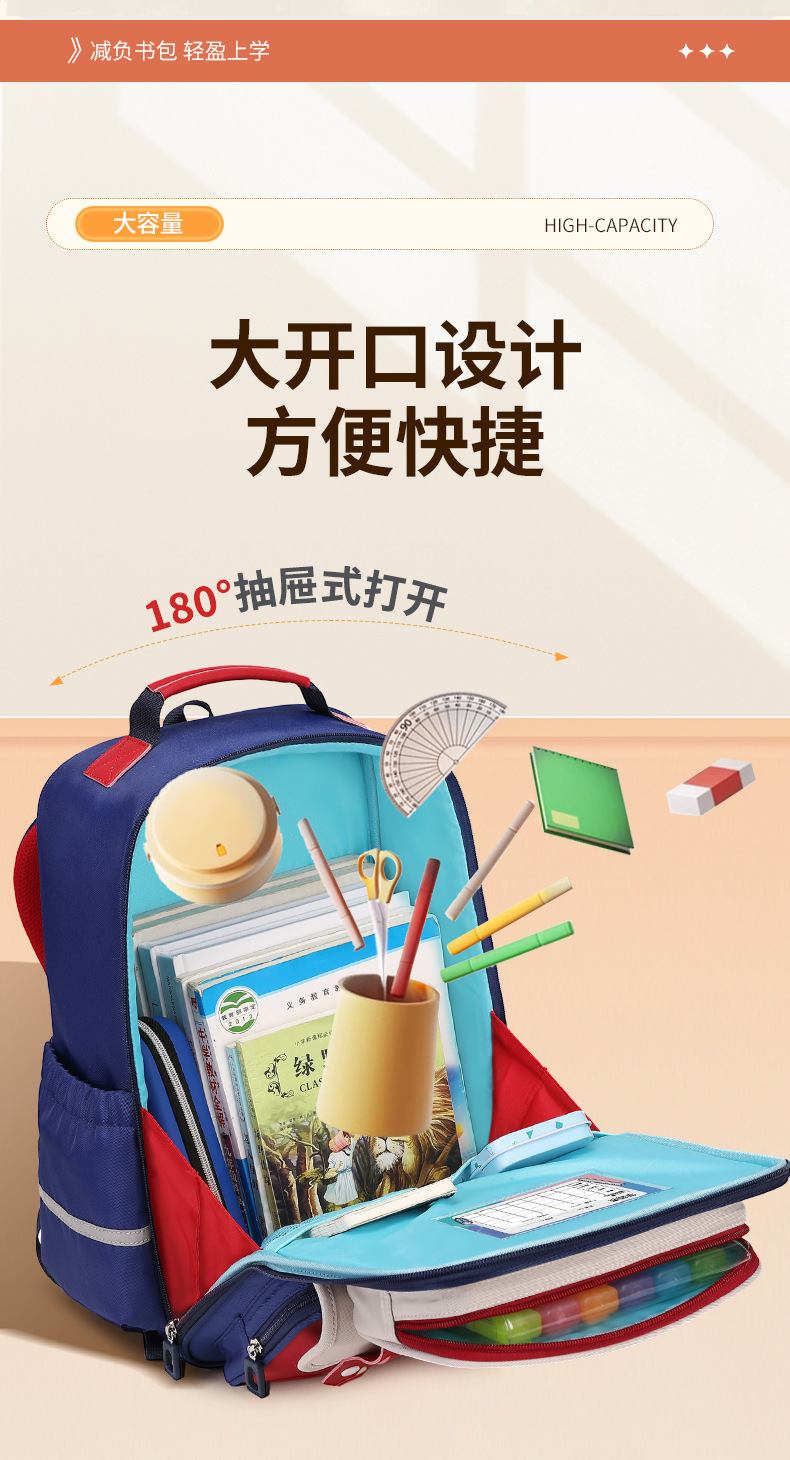 Mochilas escolares para estudiantes de primaria reducen la carga 1-3-6 grados Diseño de gran apertura Mochilas escolares para niños Mochilas ligeras para niños y niñas