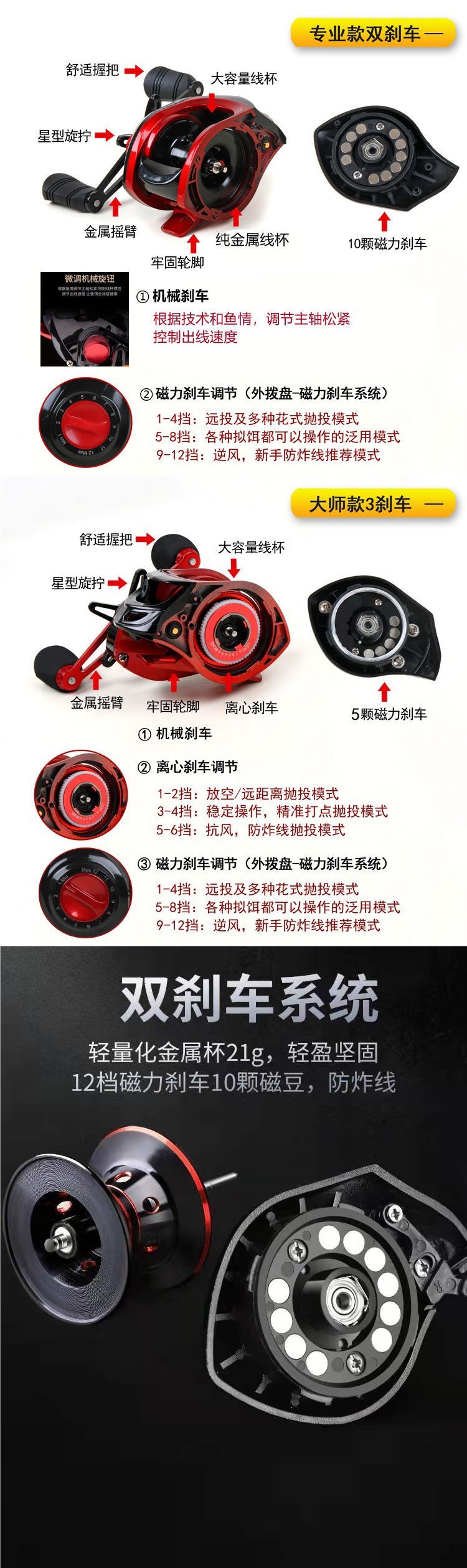 | Especificaciones | Base de entrada [copa universal de plástico + freno magnético] negro, novato recomienda [copa universal de metal + freno magnético] rojo y negro, novato recomienda [copa universal de metal + freno magnético] negro púrpura, se niega a explotar el cable [copa universal de metal + freno triple] rojo y negro |